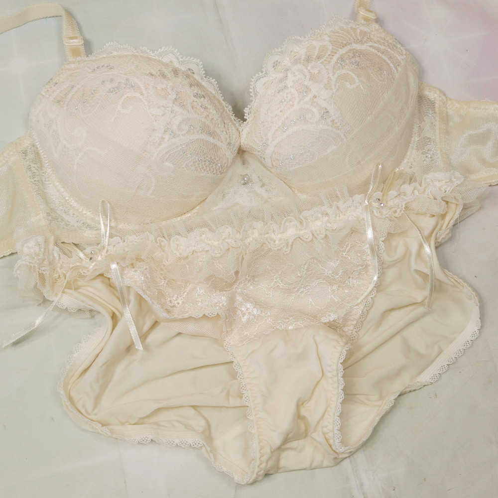 【Bランク/新古美品】Wing:B75*88 Mサイズ ★ 清楚感溢れるクリーム生地 上品レース PBセット