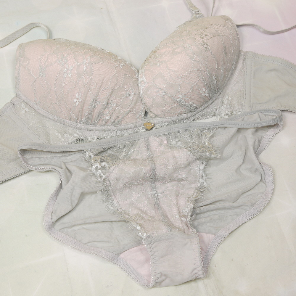 【Bランク/新古美品】Qmomo:75B Lサイズ ★ ライトグレー お嬢様感・清楚系 PBセット