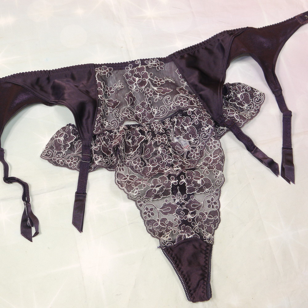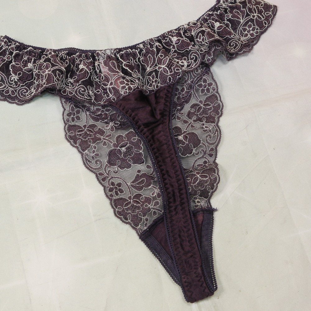 【BCランク/K43ー】ワコール:M×Mサイズ ★ 旧サルート!痴女感ムンムンの紫×繊細花レース T&ガーターセット