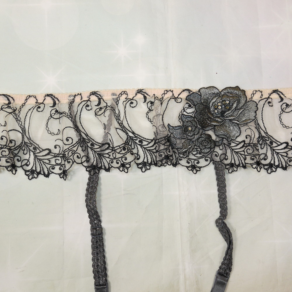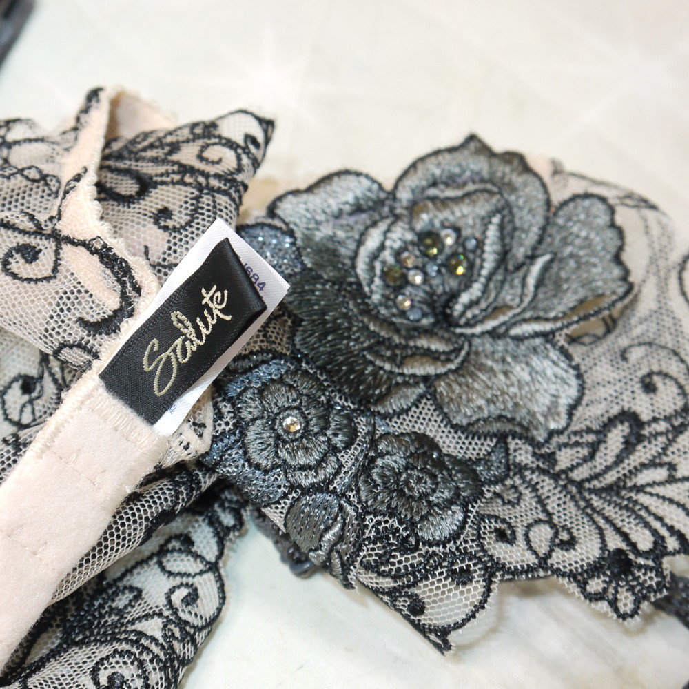 【Bランク/新古美品】サルート 84G:Mサイズ ★ アネモネ!ヌード×黒薔薇 KIRAスワロフ 激レア ガーターベルト