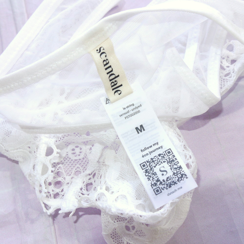 【Bランク/新古美品】Scandal:Mサイズ ★ セレブ感溢れる白×ALL透け花レース 激細フロント T