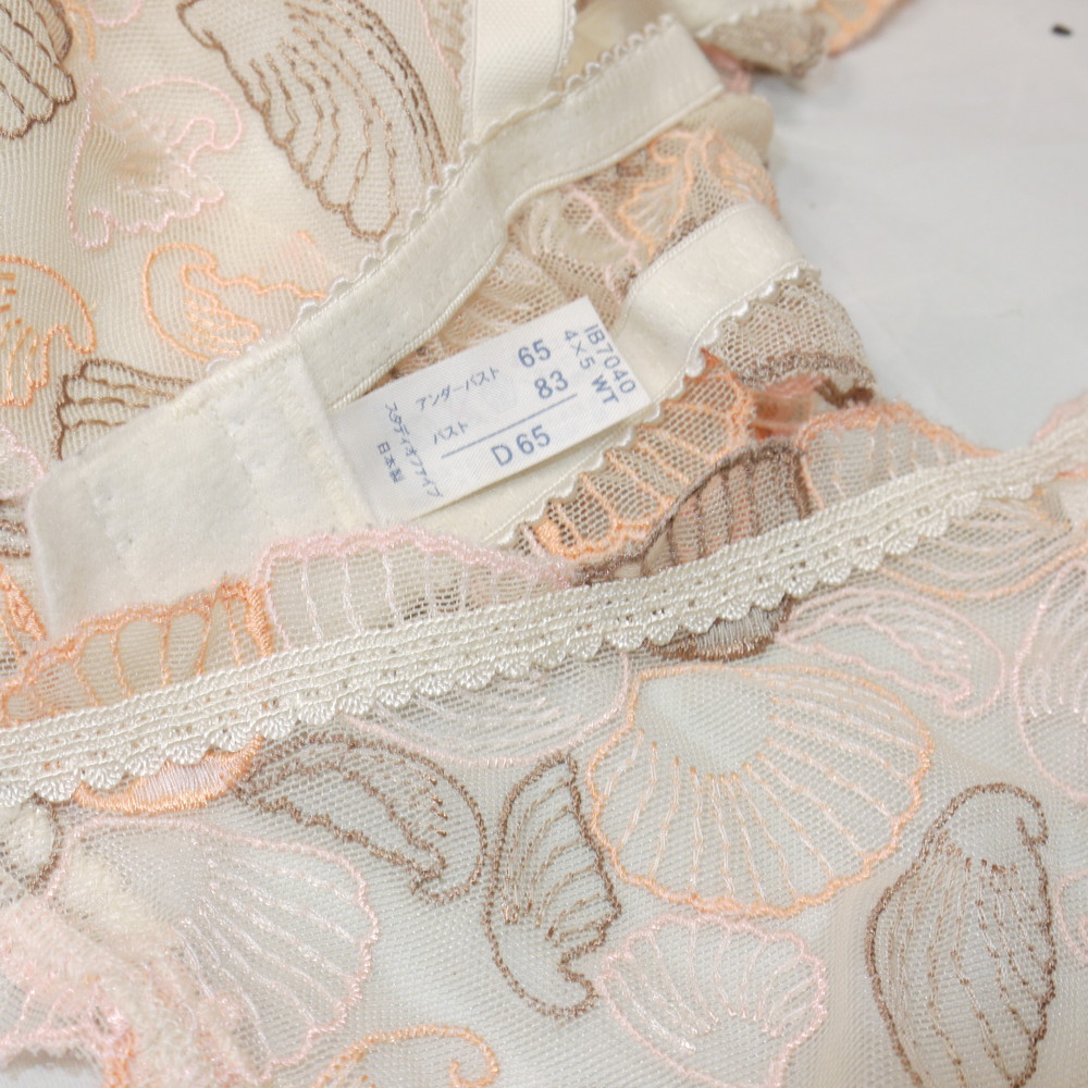 【Bランク/新古美品】スタディオファイブ 40G:D65*83 MLサイズ程度 ★ 大人可愛いシェルデザイン ALL透けSEXY 遊び心なランジェ T PBセット