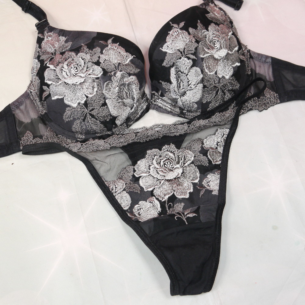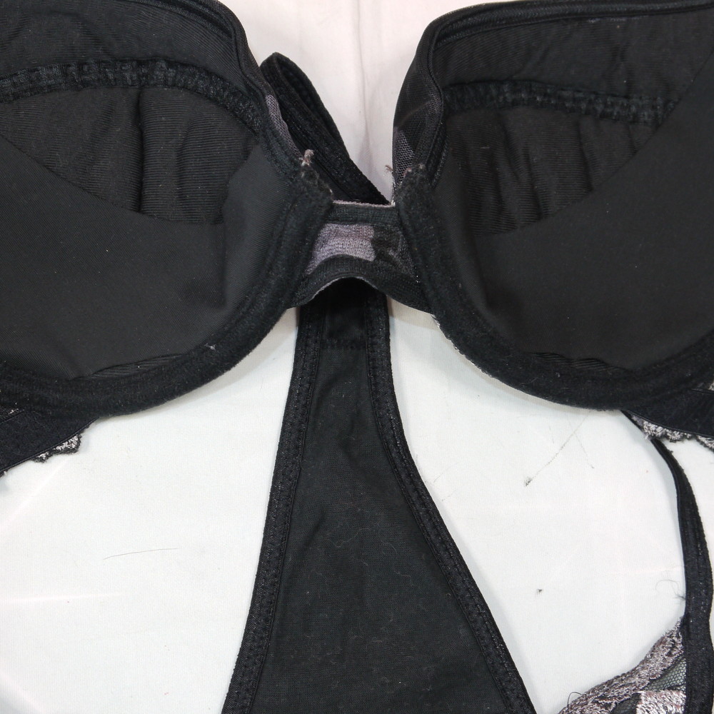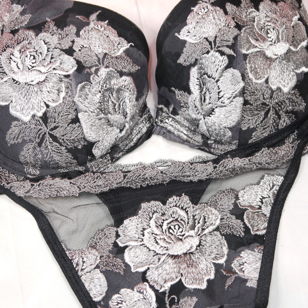 【Bランク/新古美品】ワコール:D65*83 MLサイズ程度 ★ 大人度が一気に上がる黒ランジェ 銀薔薇 T PBセット