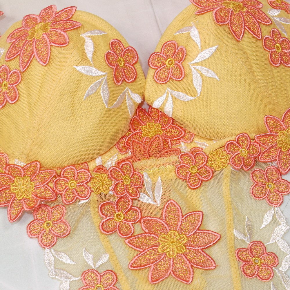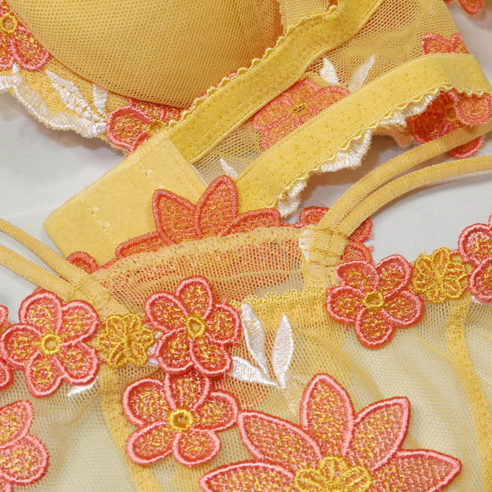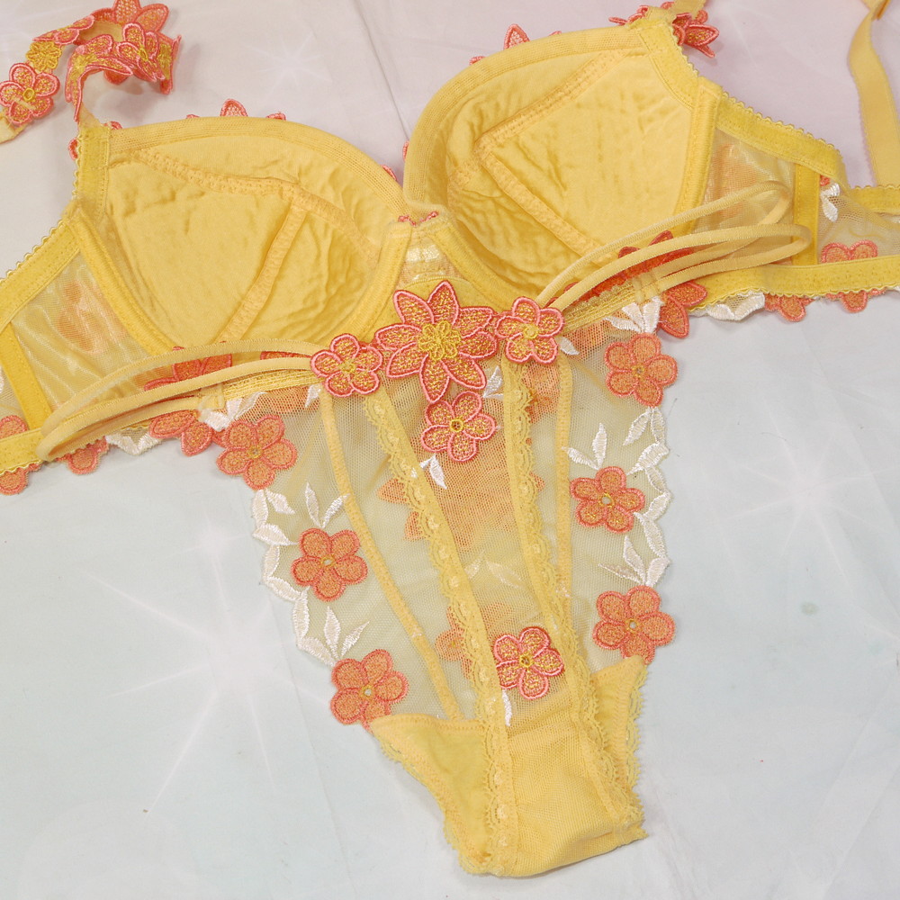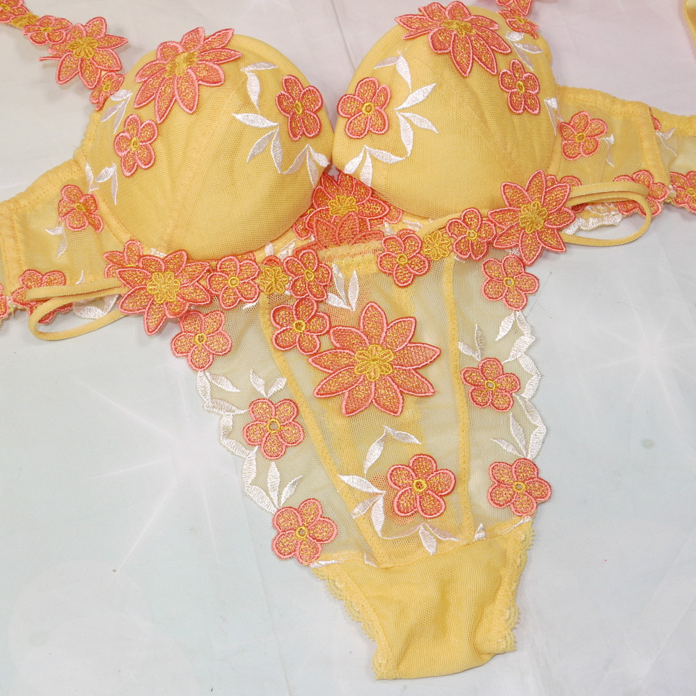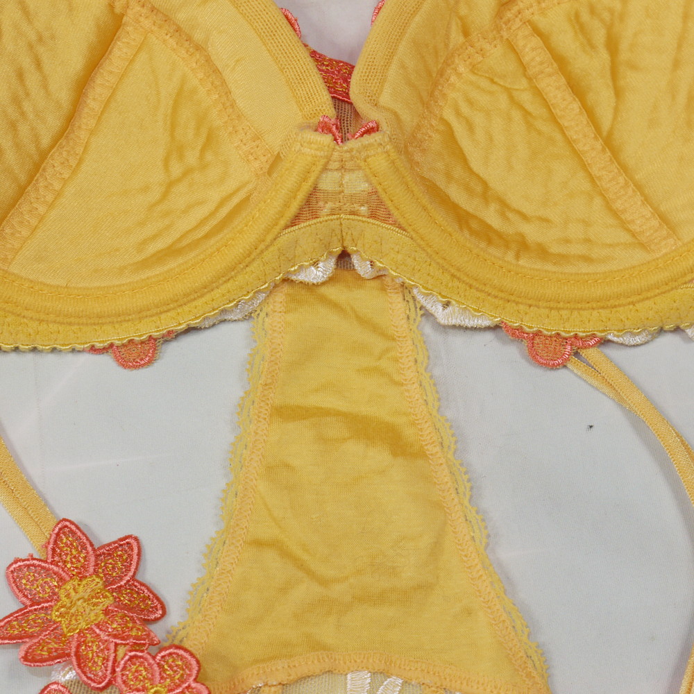 【Bランク/新古美品】スタディオファイブ?:DEカップ程 MLサイズ程度 ★ 山吹色でシックにそれでも華やかに!可愛い花刺繍 T PBセット