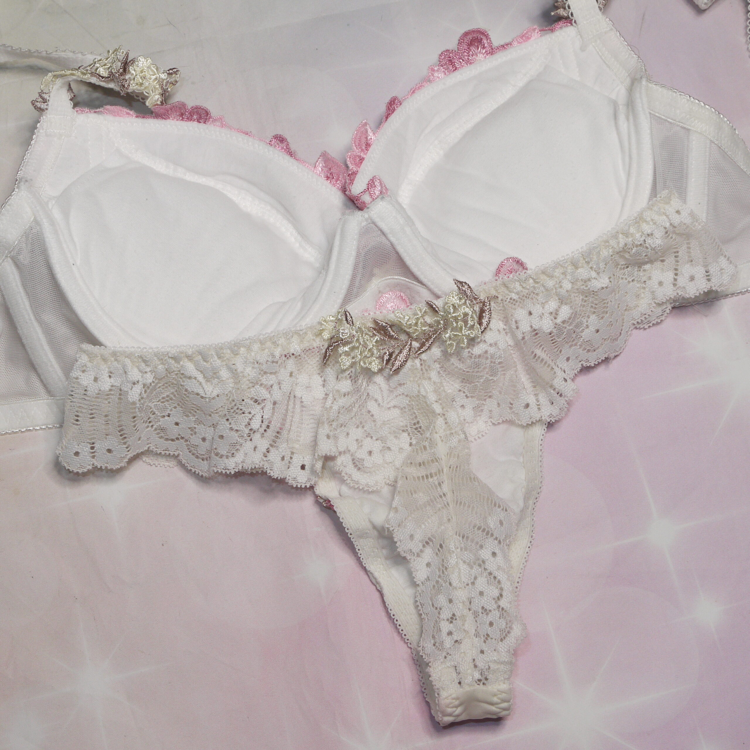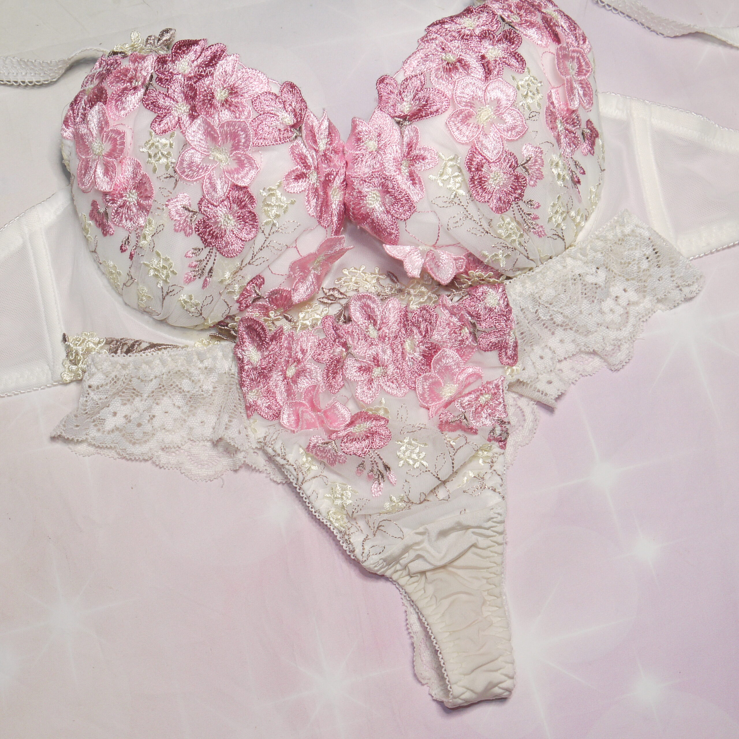 【Bランク/新古美品】リサマリ?:DEカップ程 MLサイズ程度 ★ 清楚な白下着 豪華絢爛の花刺繍ランジェ T PBセット