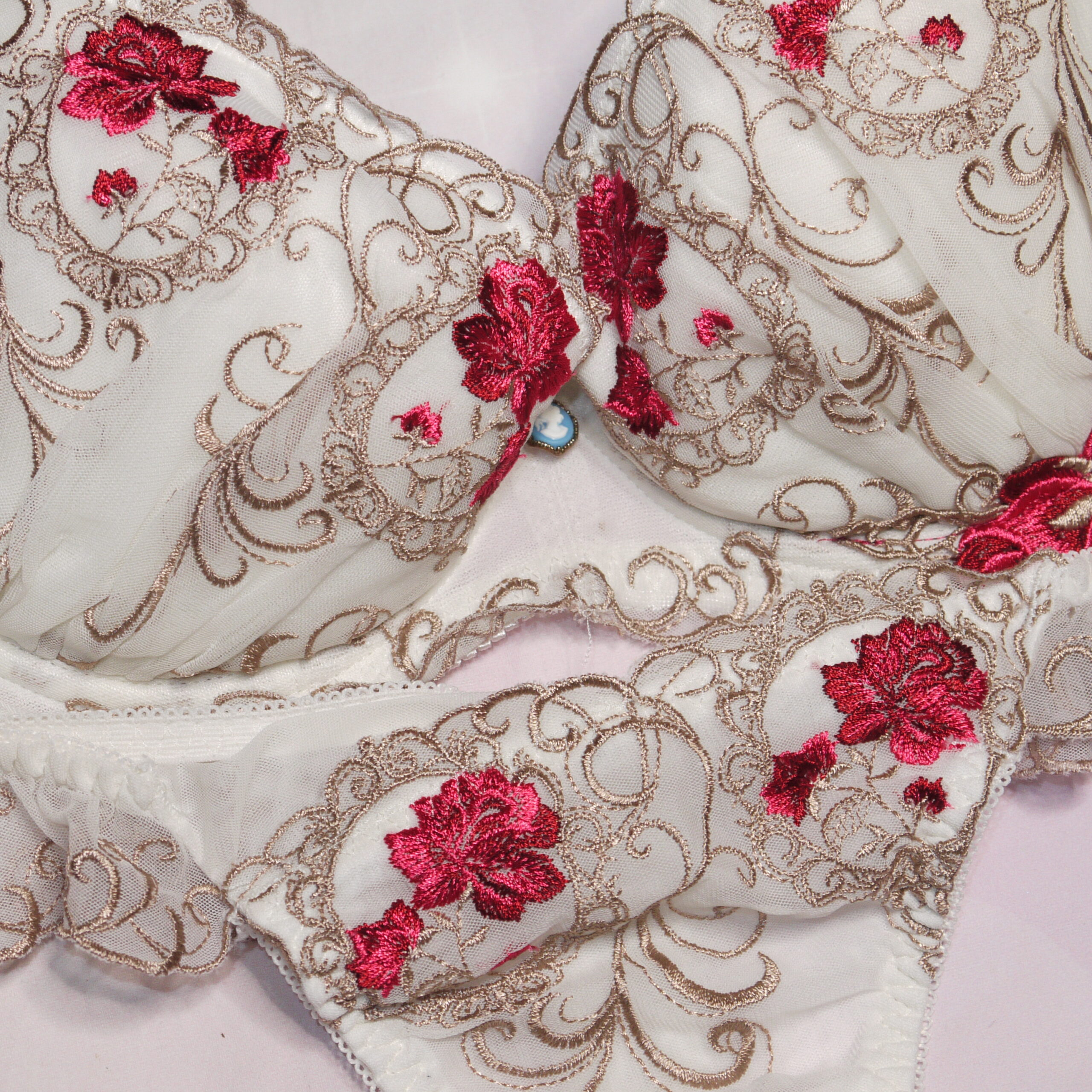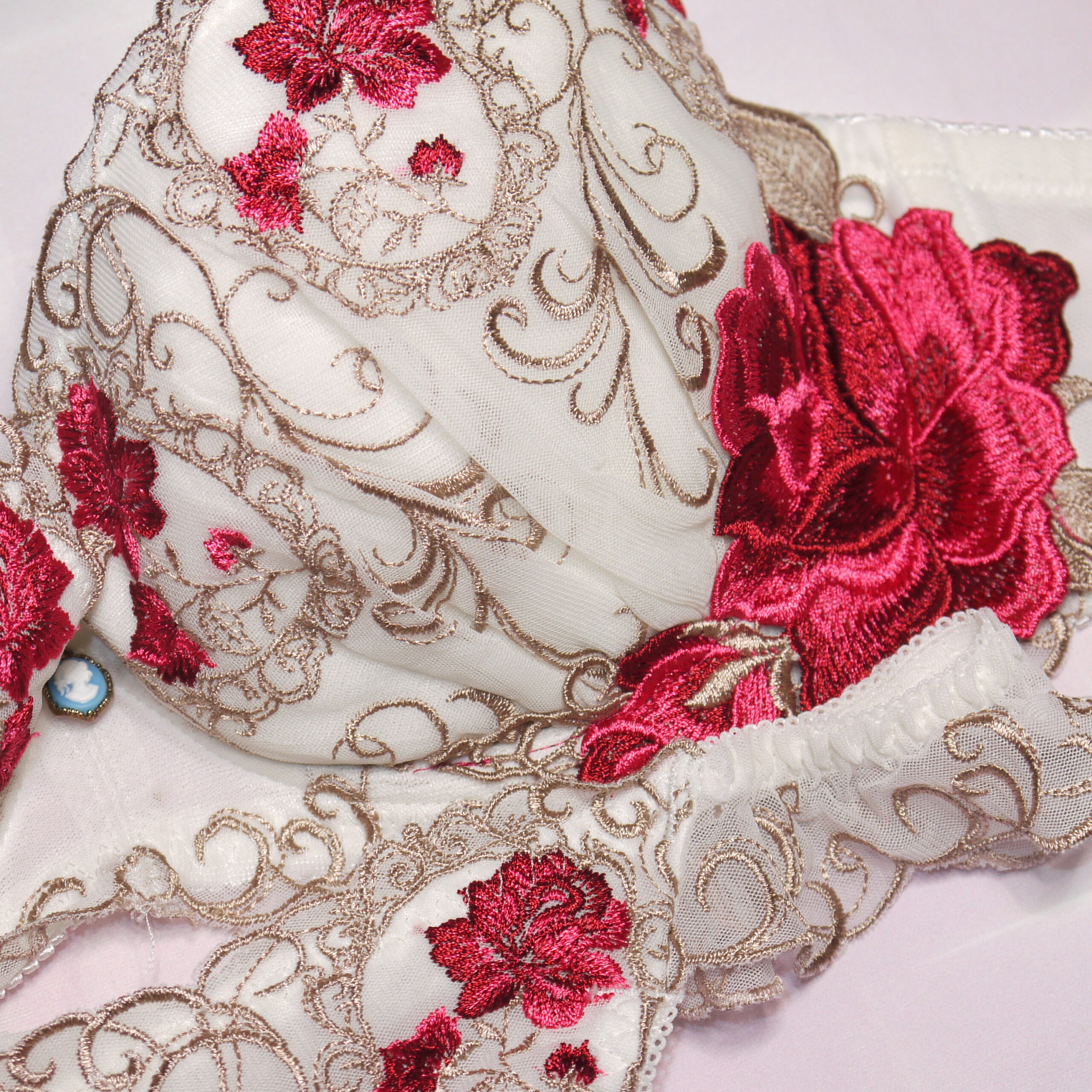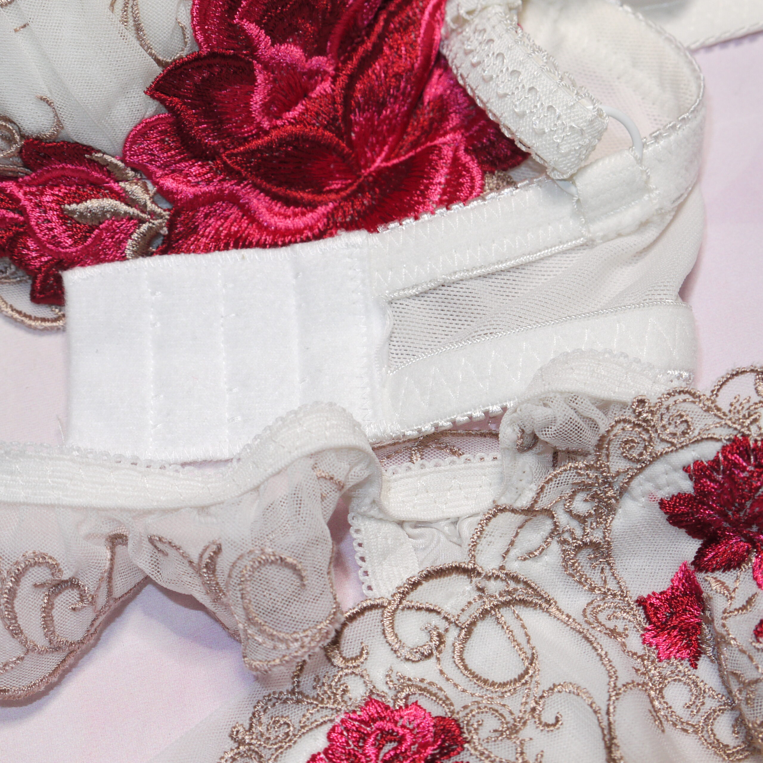 【Bランク/新古美品】リサマリ?:DEカップ程 MLサイズ程度 ★ お嬢様感UPの白ランジェ 赤薔薇 T PBセット