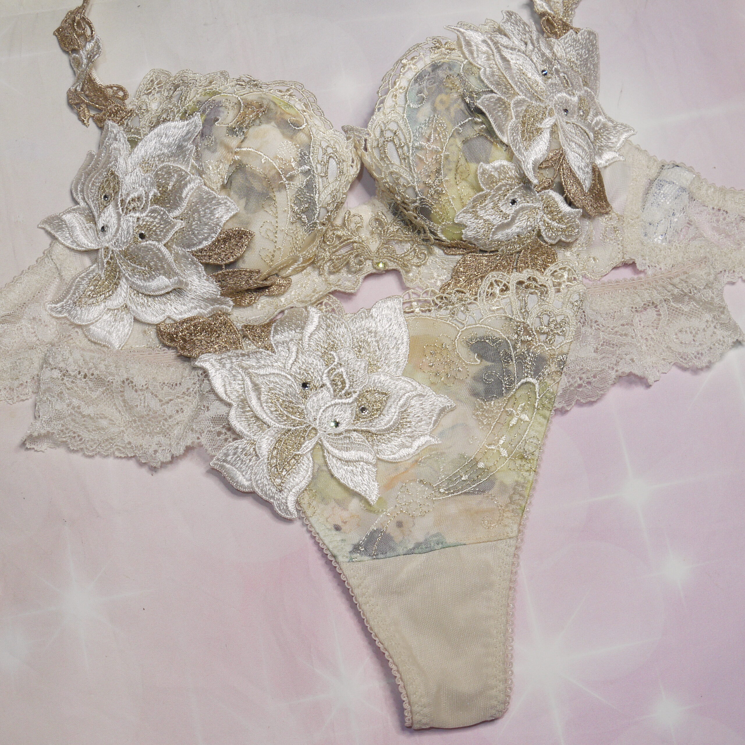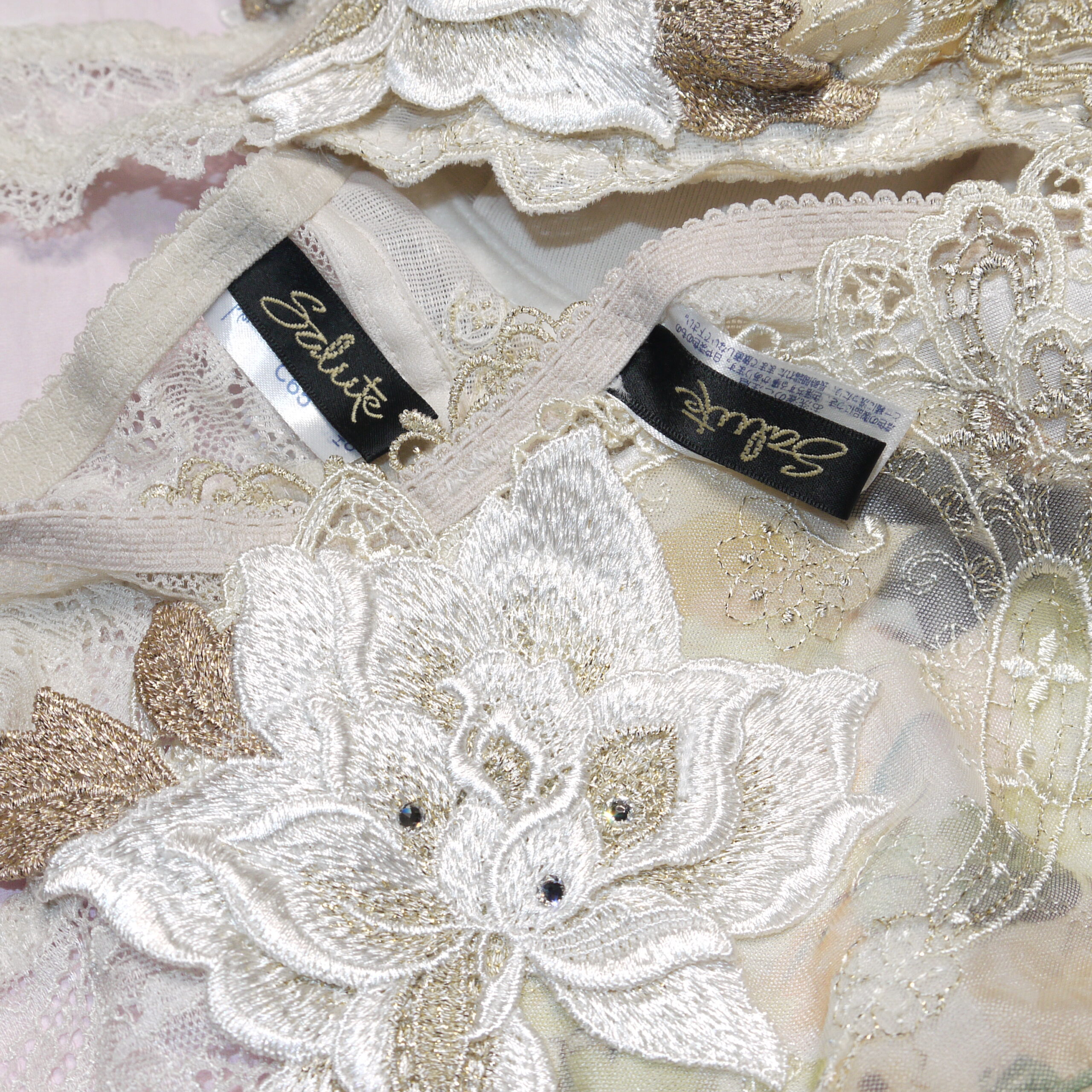 【Bランク/新古美品】サルート 90G:C65*80 Mサイズ ★ オペラ座の怪人!店舗限定 アイボリー×大輪薔薇アップリケ スワロフ T PBセット