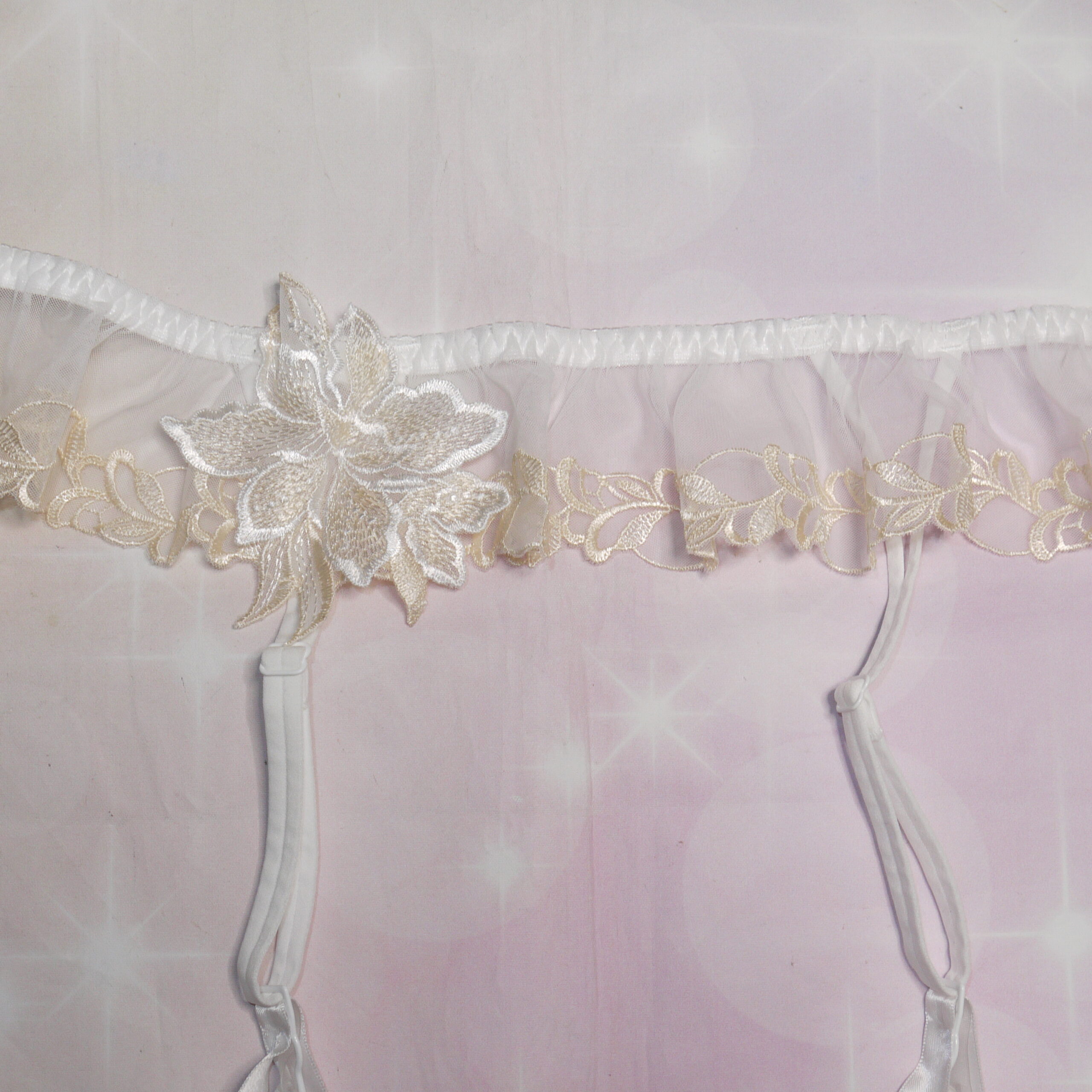 【ABランク/未使用?】MLサイズ程度 ★ 清楚白×花刺繍 透かしガーターベルト