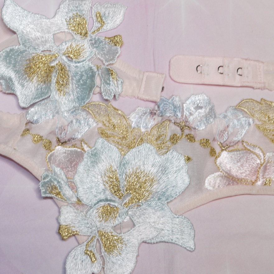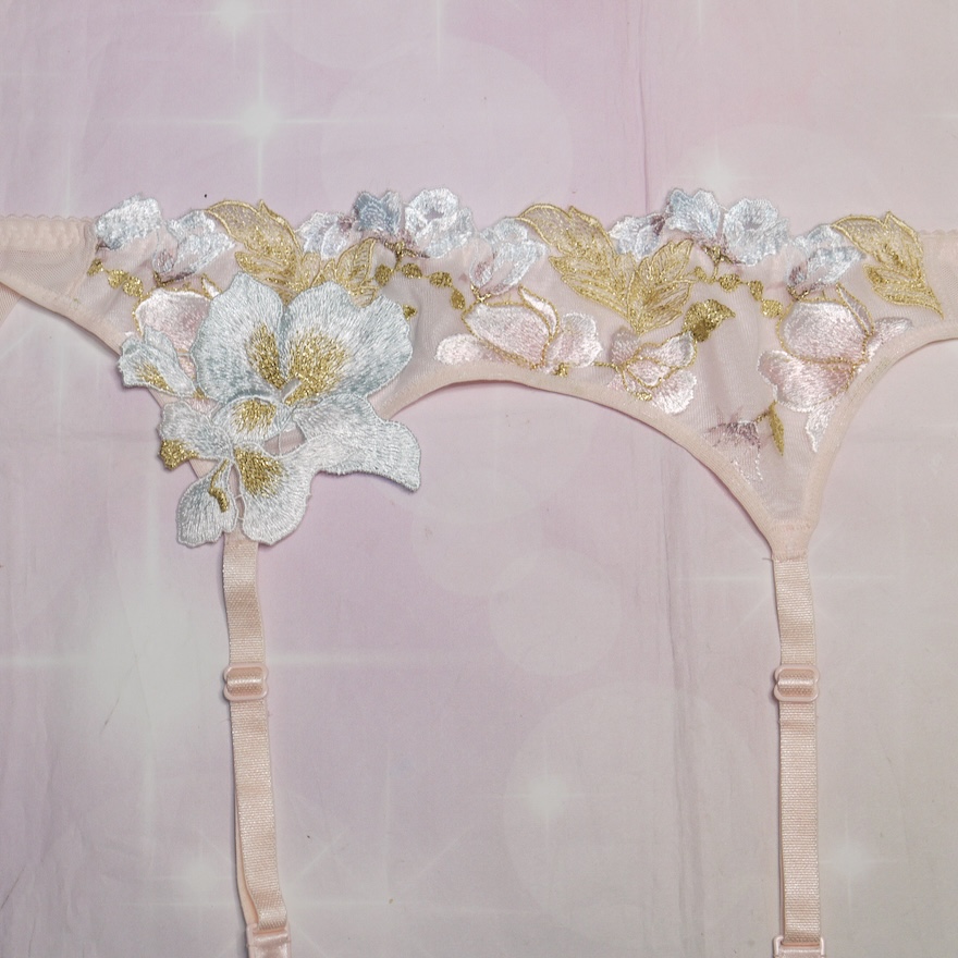 【Bランク/新古美品】サルート 71G:Mサイズ ★ キューバ!高貴な淡ピンク×大輪花 金糸 ガーターベルト