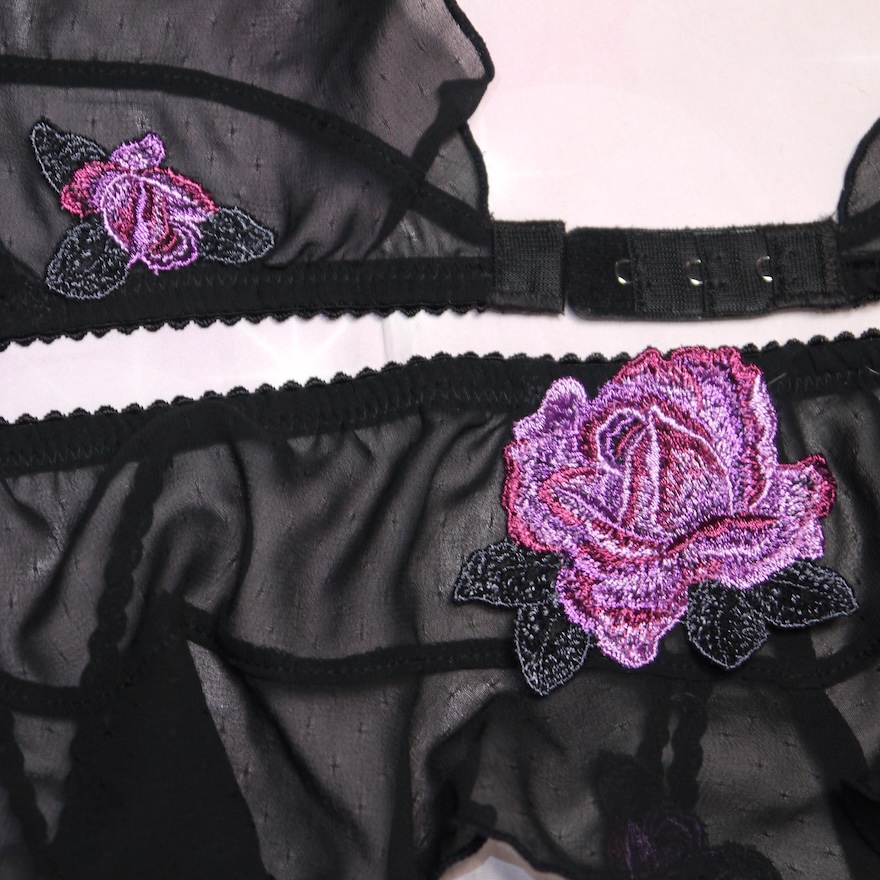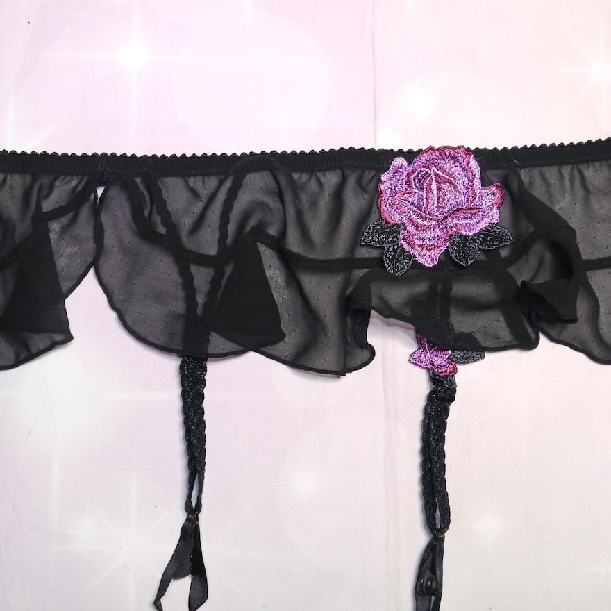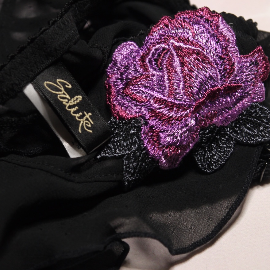 【Bランク/新古美品】サルート 72G:Mサイズ ★ 廃盤希少!痴女感UPの黒フリル×紫薔薇 ガーターベルト