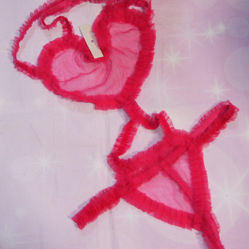 【Sランク/タグ付】MLサイズ程度 ★ ド派手ピンクにモハモハふりる ハートランジェ