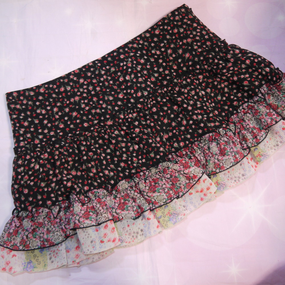 【Bランク/新古美品】CECIL McBEE:S(伸縮抜群) ★ ロリ&スイーツ系の可愛い小花 フリルスカート