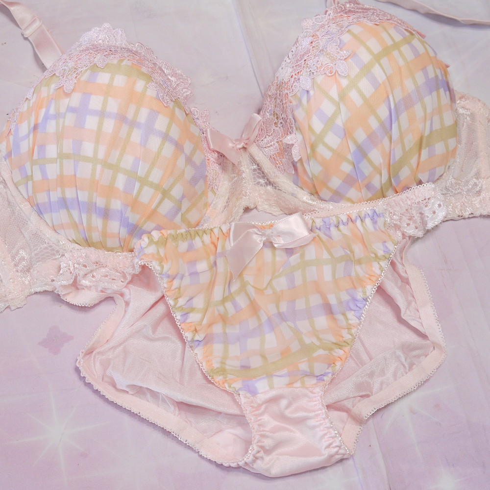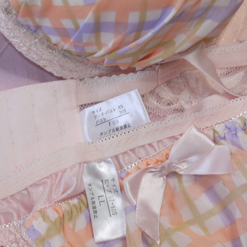【Bランク/新古美品】日本ニット:F85*108 LLサイズ ★ ロリっと可愛いティーンズJCJK系 チェック 爆乳デカブラ&希少85 PBセット