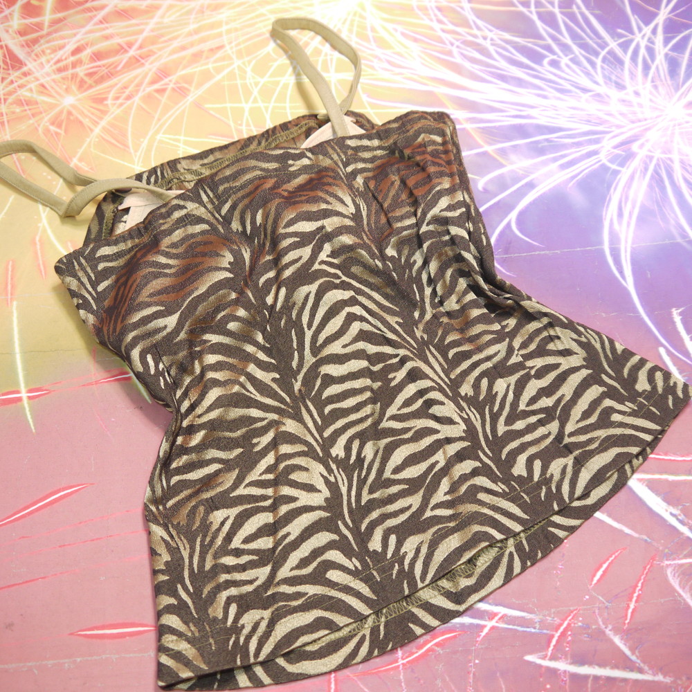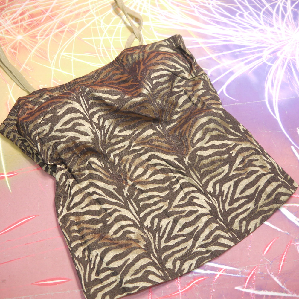 【Bランク/新古美品】M 丈36 ★ ボディコン&ギャル系 ゴールドゼブラ ブラキャミ