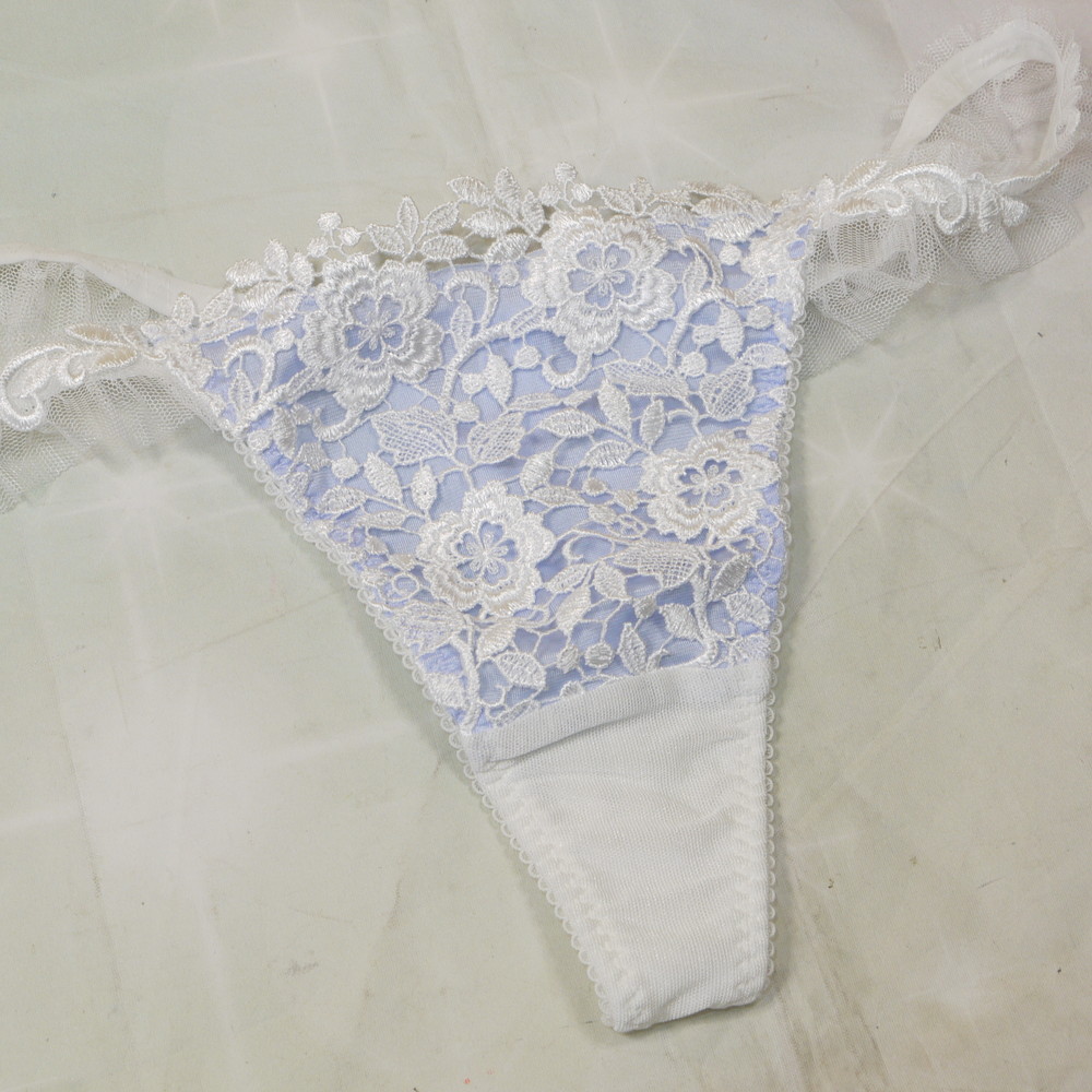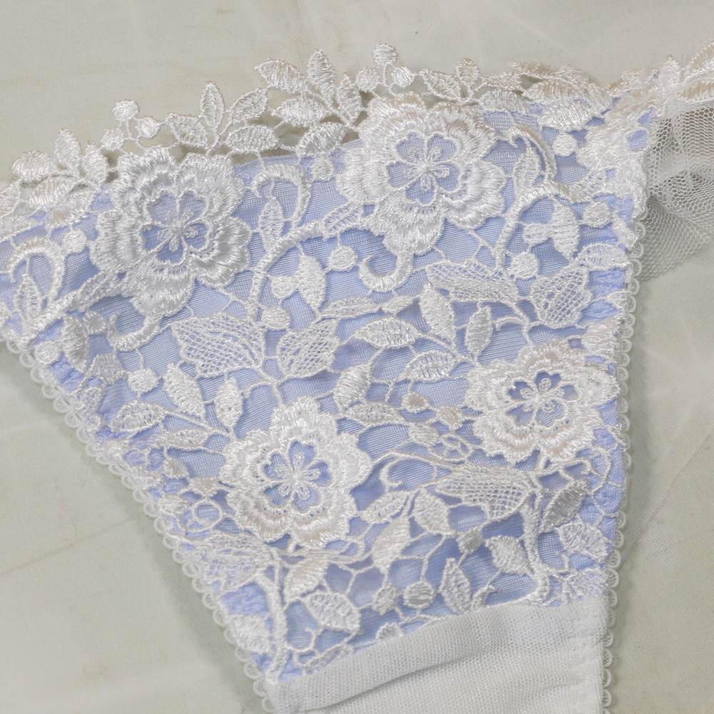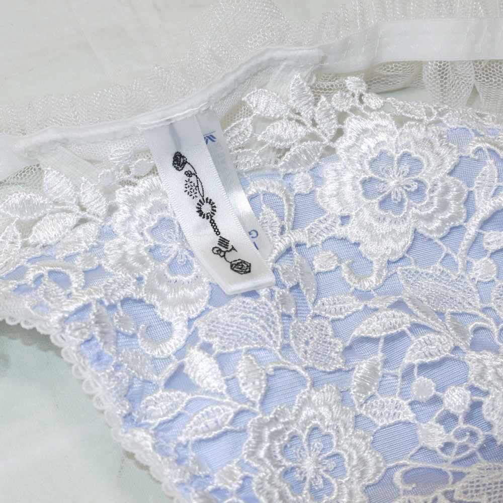 【Bランク/新古美品】パルファージュ:Mサイズ ★ 高級感溢れる厚手花刺繍 ライトブルー T