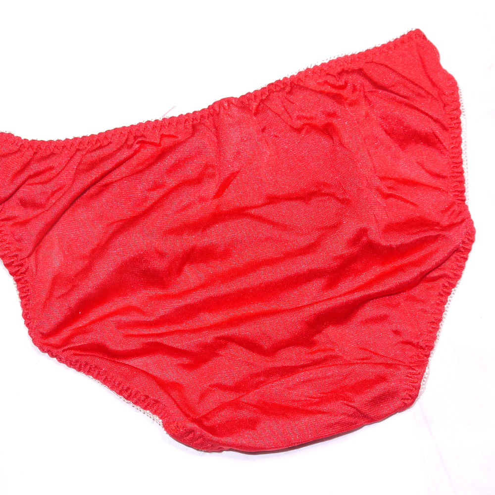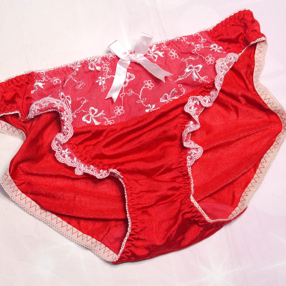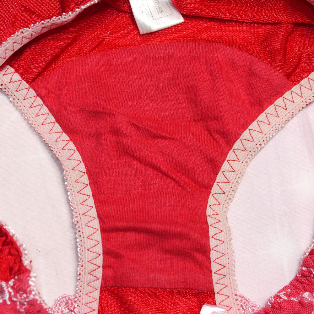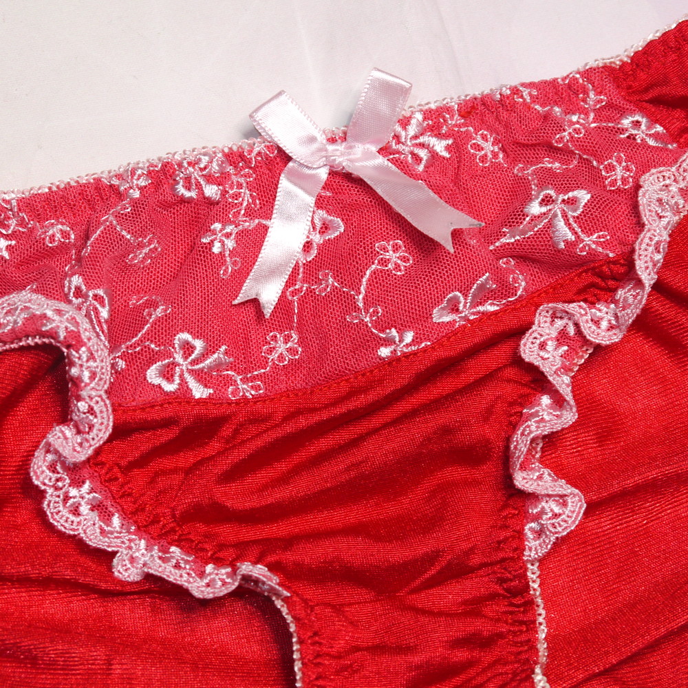 【Bランク/新古美品】プレジャージーン:Mサイズ ★ ティーンズJCJK系の可愛い赤サテン 小花×リボン刺繍 パンティ