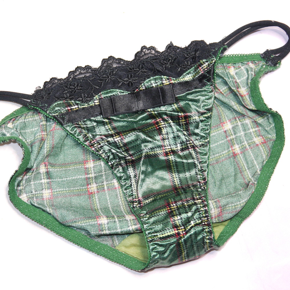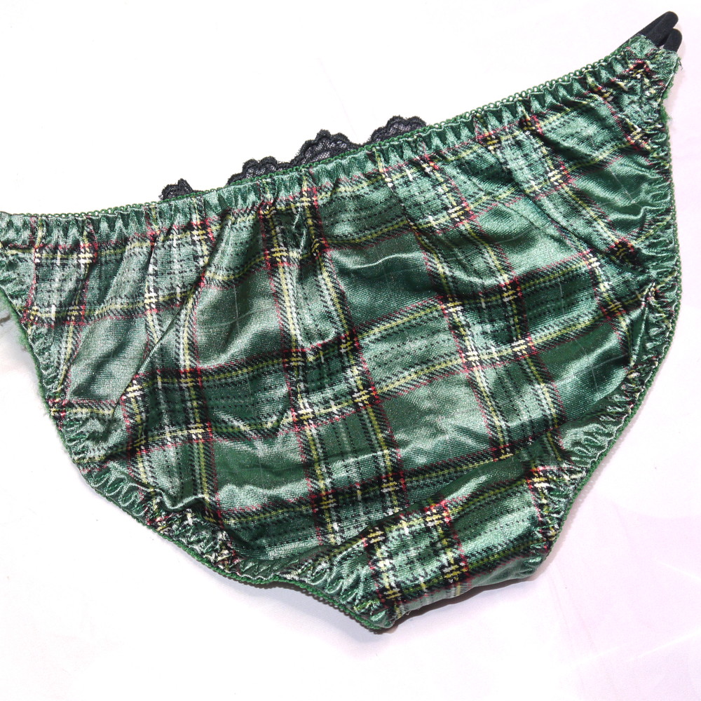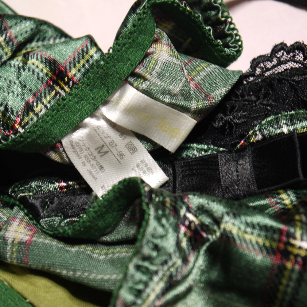 【BCランク/K43ー】エメフィール:Mサイズ ★ 甘サテンの光沢グリーン×チェック柄 超可愛いティーンズGAL系パンティ
