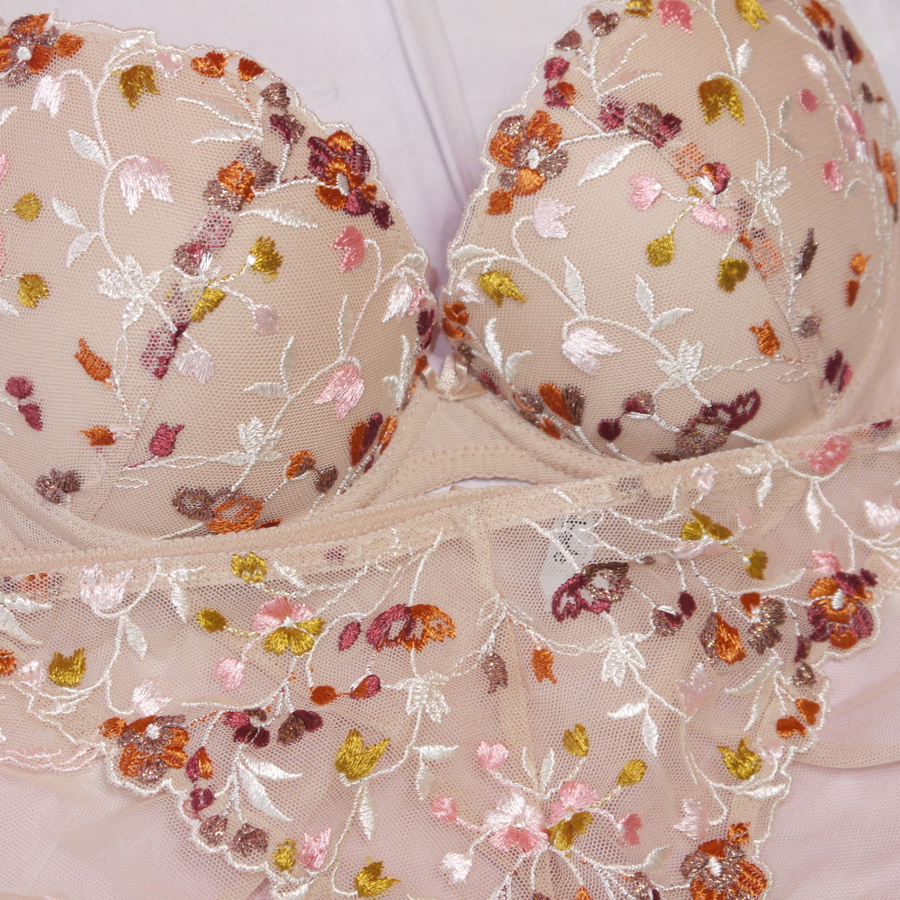 【Bランク/新古美品】Aubade:CDカップ程 MLサイズ程度 ★ ヌードカラーでとっても上品です 小花×透かし PBセット