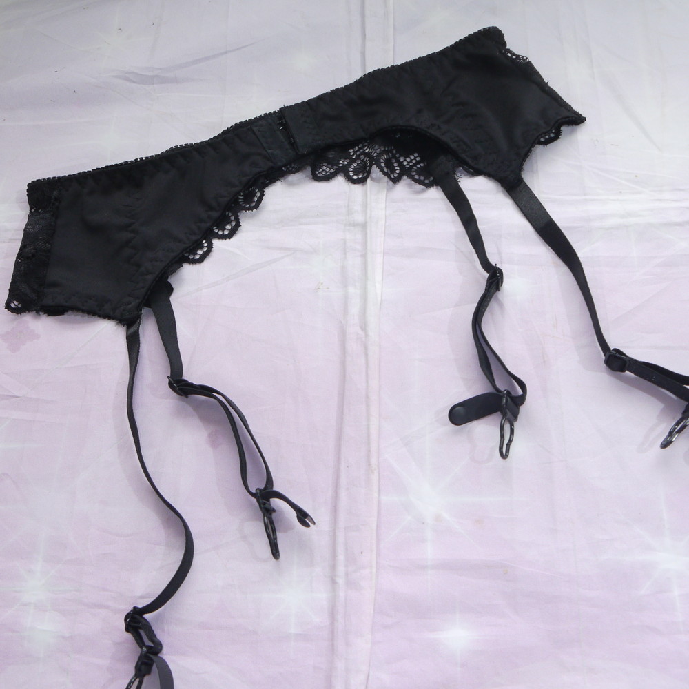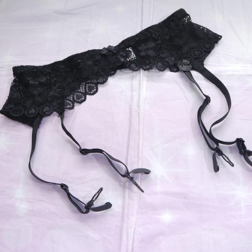 【ABランク/未使用?】MIDDLE:MLサイズ程度 ★ 妖艶ブラック×ハートレース ブリっと可愛いガーターベルト