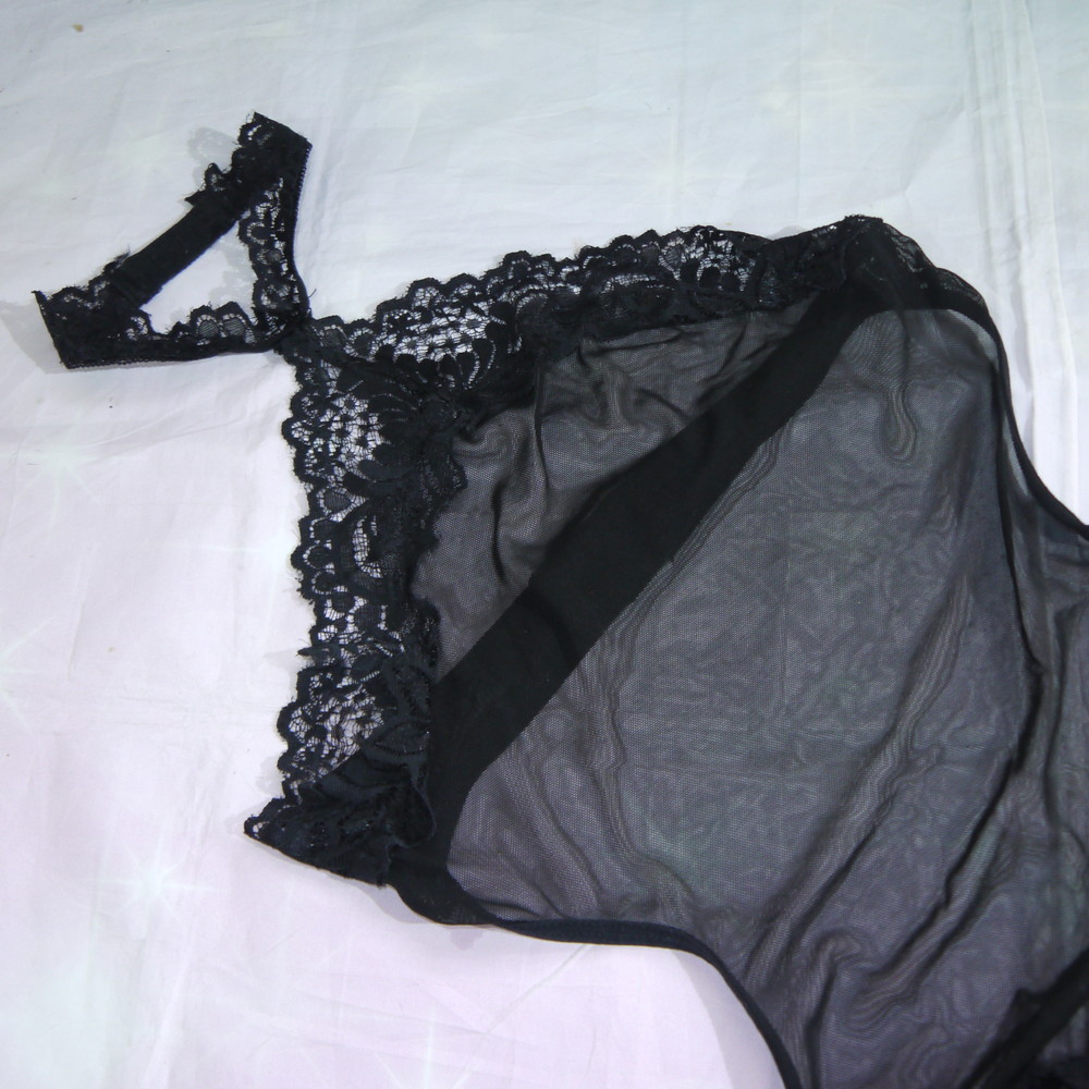 【Bランク/新古美品】M-LLサイズ程度 ★ 痴女感UPのALL透け黒 ボディスーツ クロッチオープンです