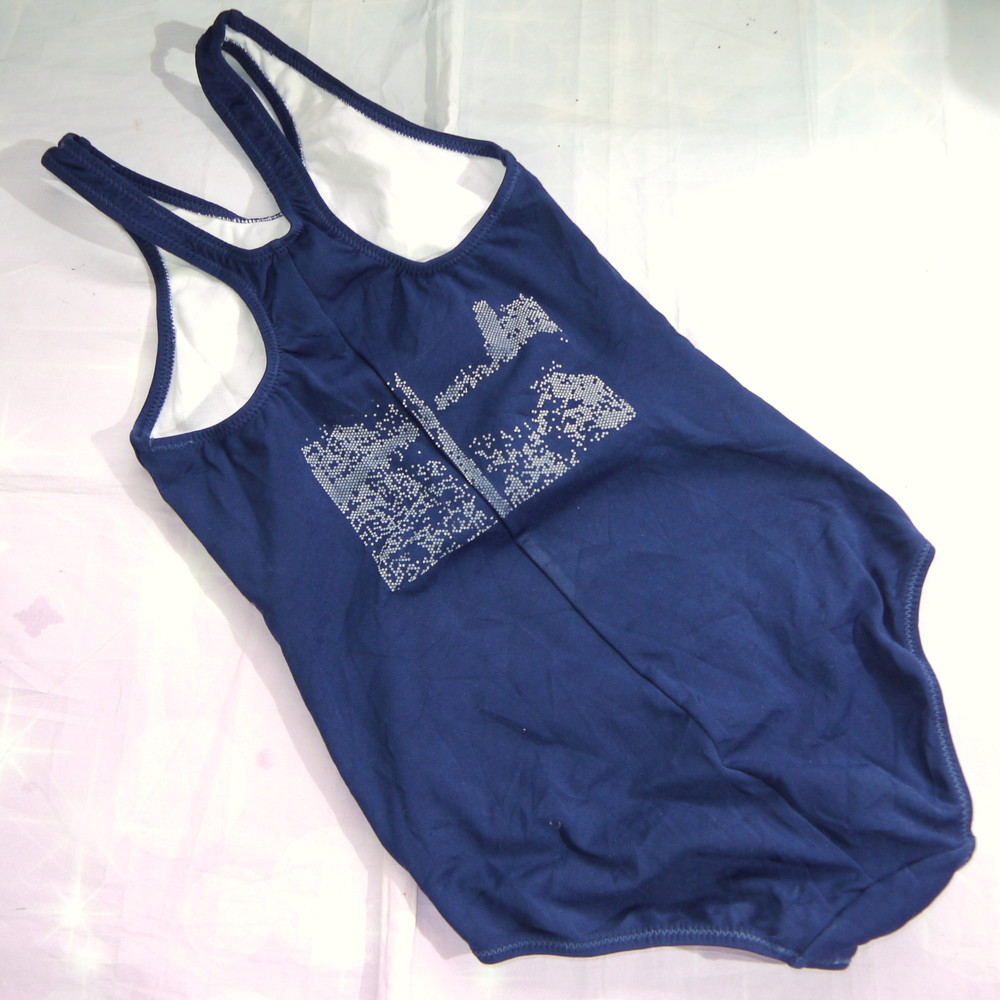【Bランク/新古美品】ASICS DEPORTE MATE:140(MLサイズ程度) ★ ネイビー×シンプル JSJC系 スク水