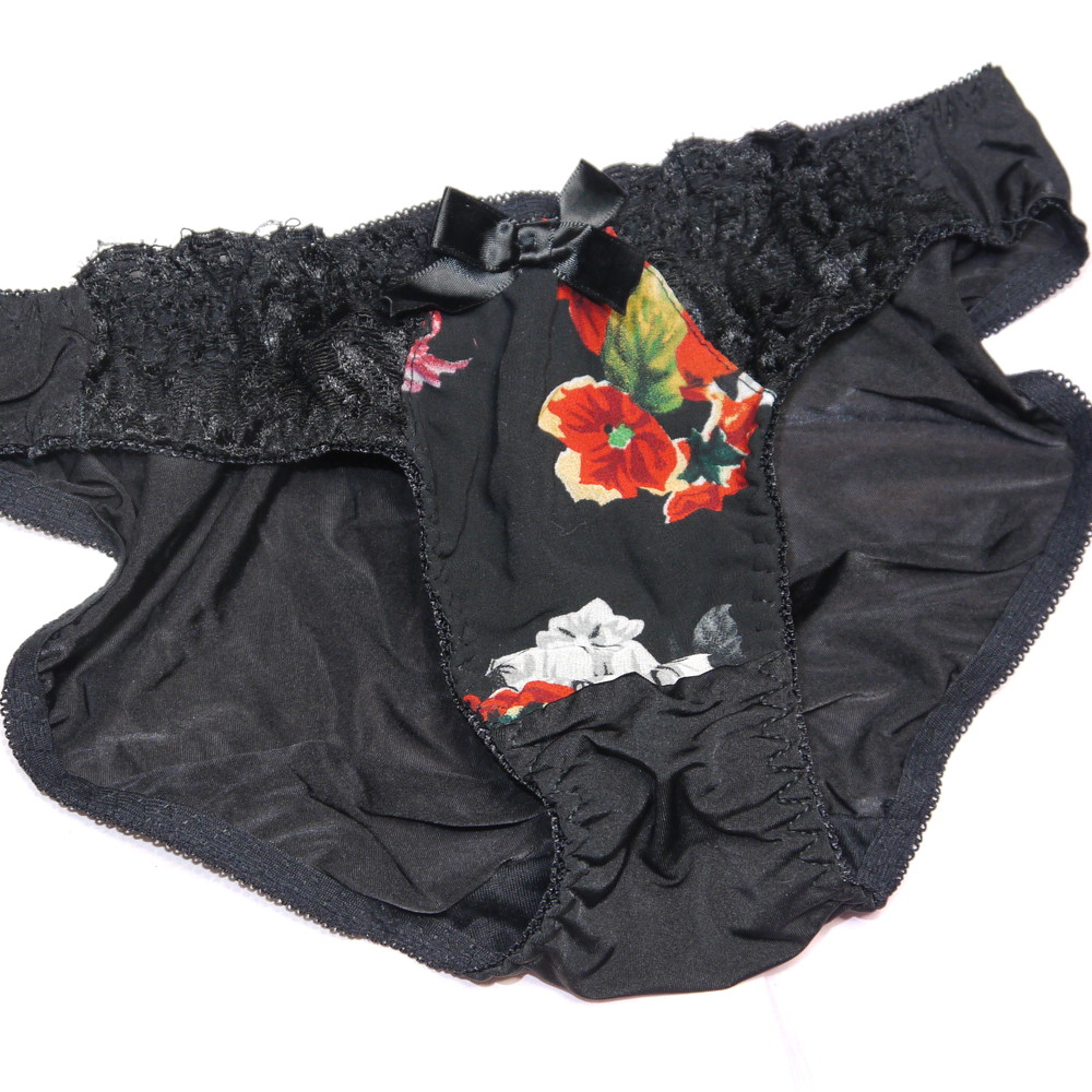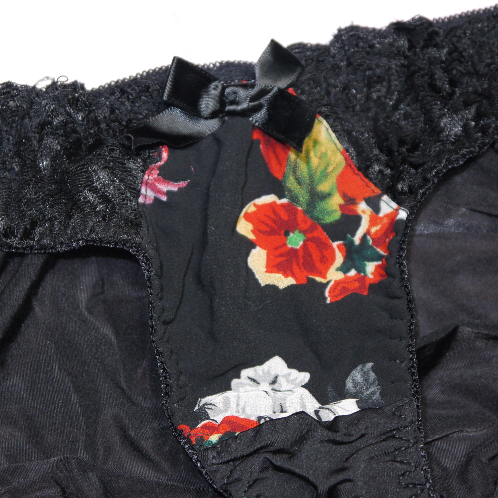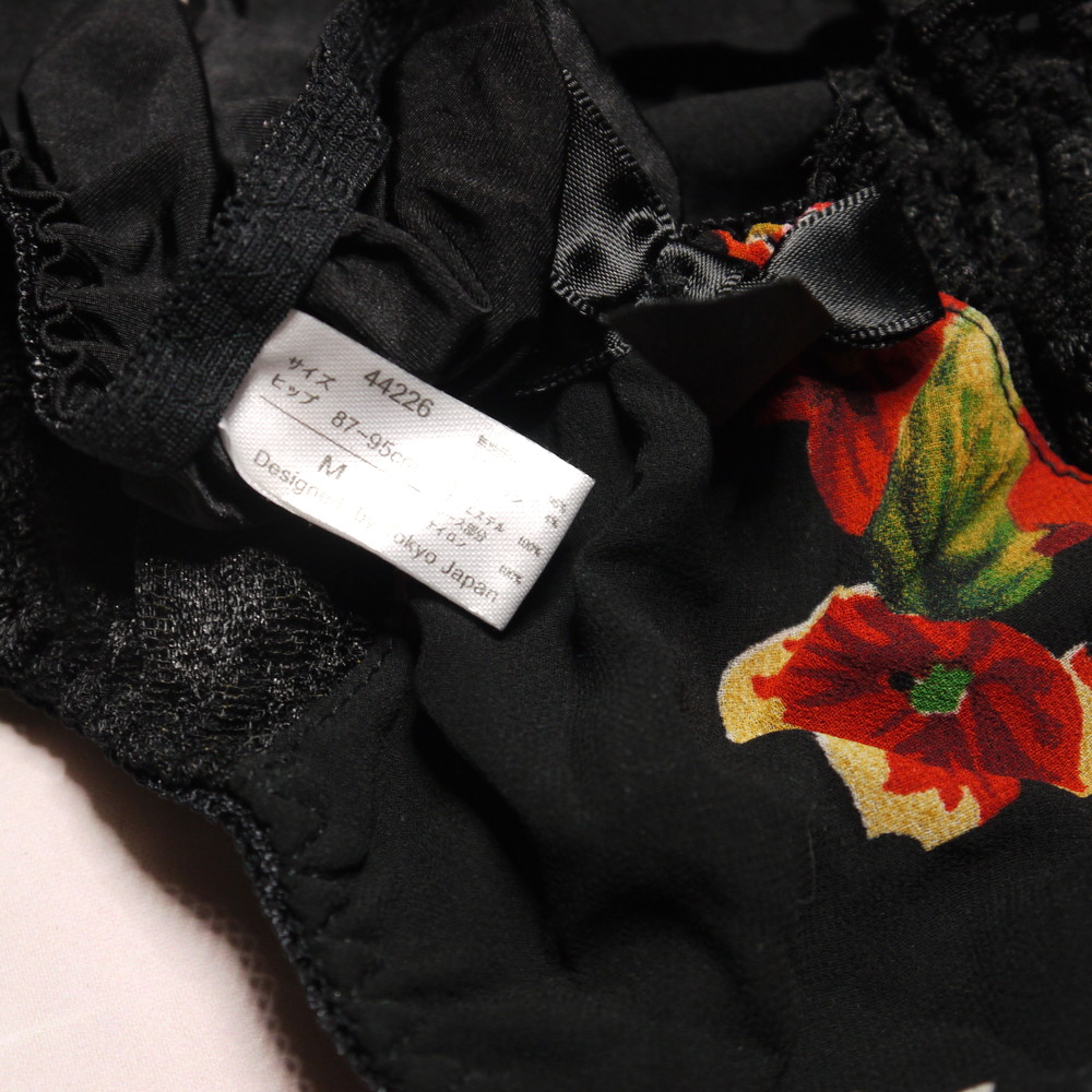 【ABランク/未使用?】三栄:Mサイズ ★ お姉様感UPの黒パン パンジー風お花柄 ショーツ