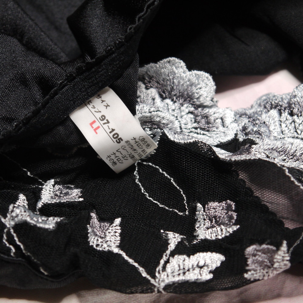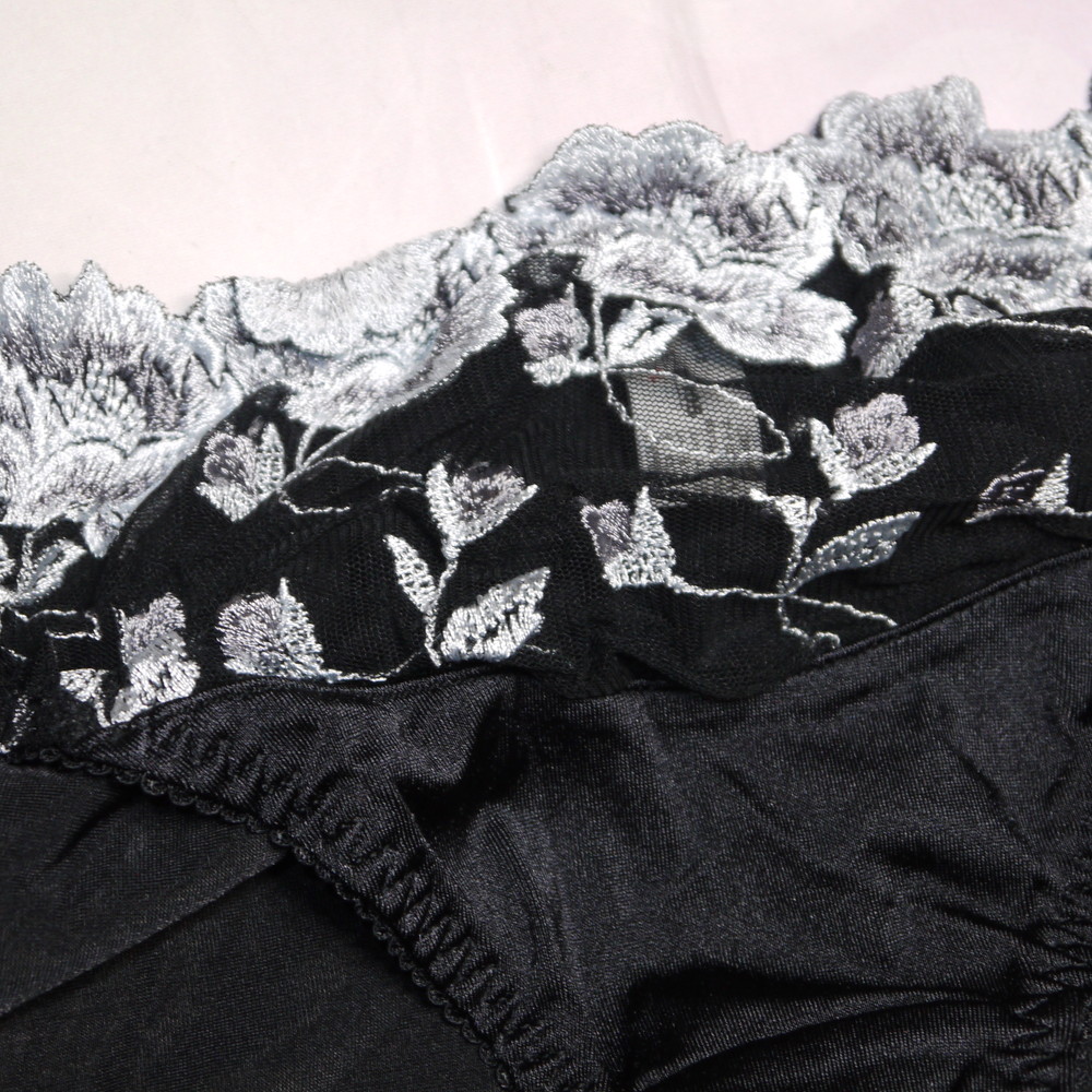 【Bランク/新古美品】あつみファッション:LLサイズ ★ 妖艶香る黒×大輪の白薔薇刺繍 肉感メガ 和ショーツ