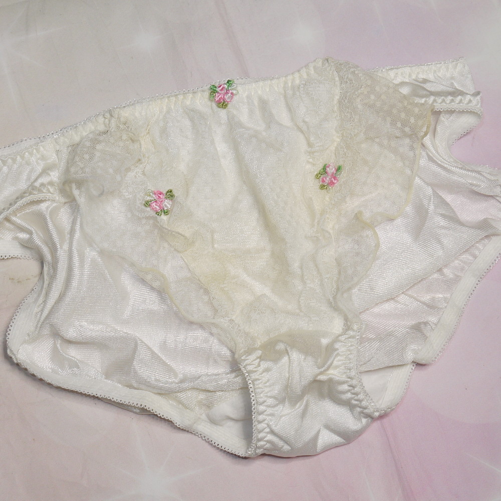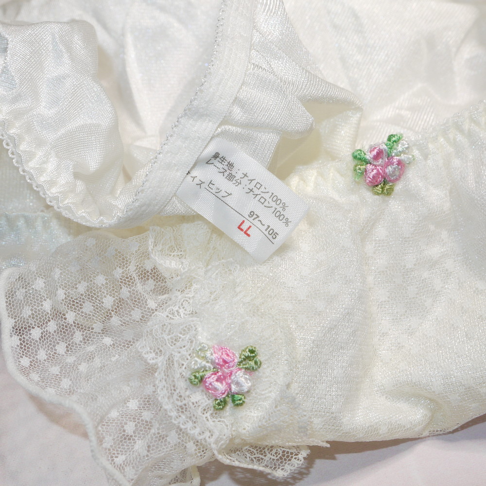 【Cランク/43ー】林産業:LLサイズ ★ 清楚感溢れる白サテン 肉感メガ レトロレース×お花 パンティ つるつるP
