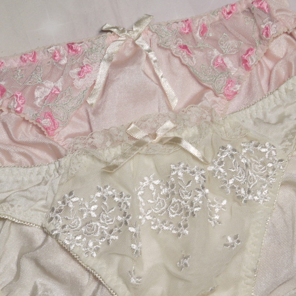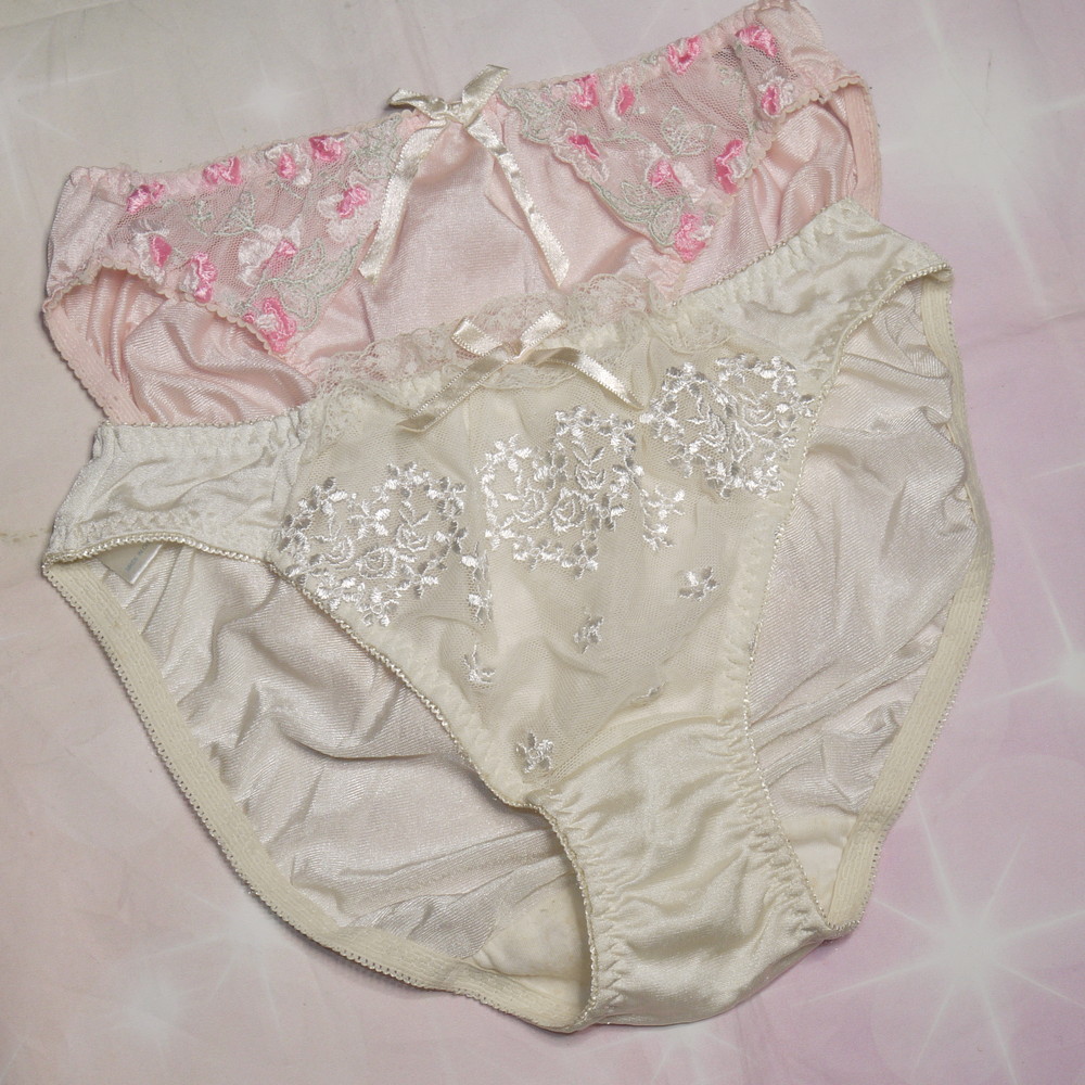 【Cランク】まとめ売り:MLサイズ程度 ★ サンロード入り!しっとりサテン生地 小花刺繍 大人ショーツ 2枚セット