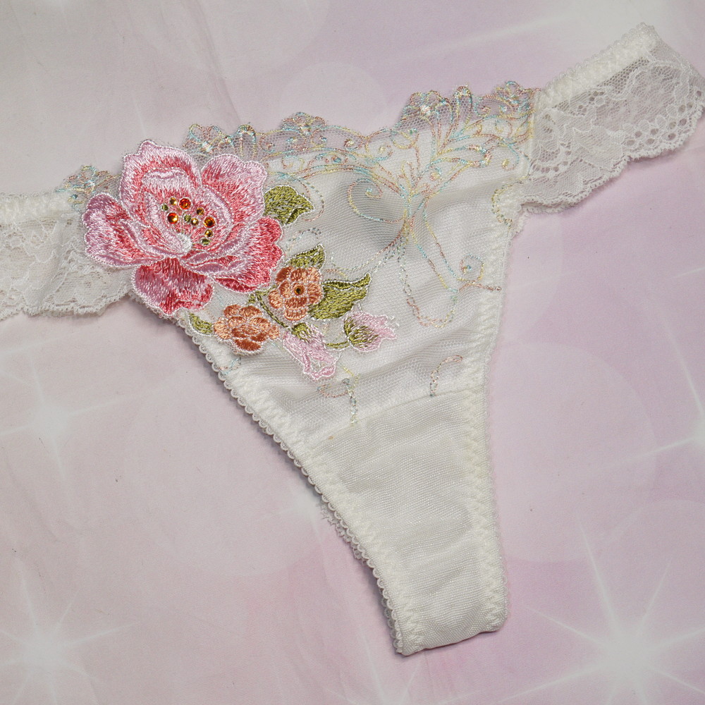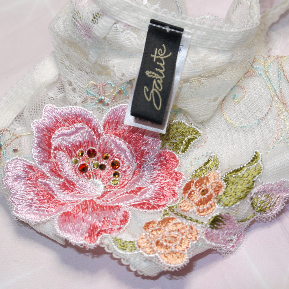 【BCランク/K43ー】サルート 84G:Mサイズ ★ 清楚で高貴なオフホワ×カラフルスワロフ 最上級ランジェ T