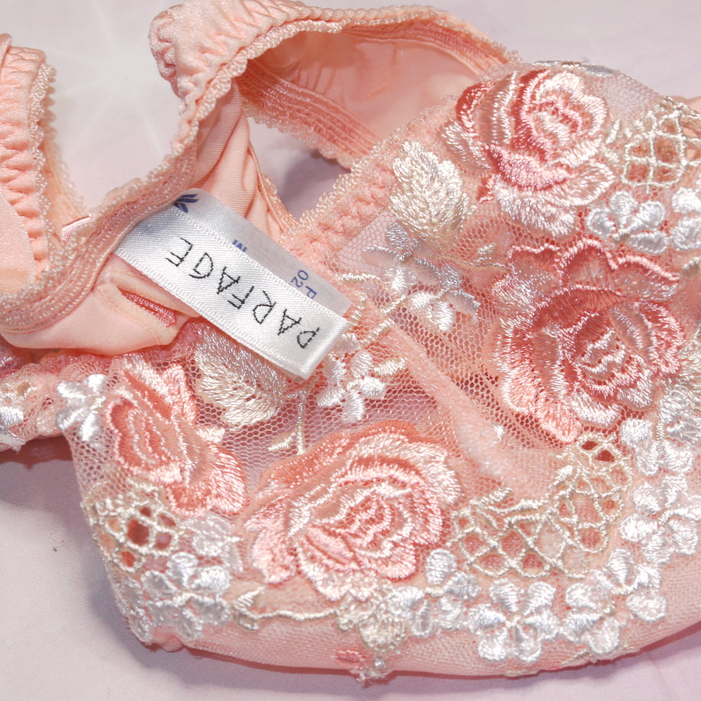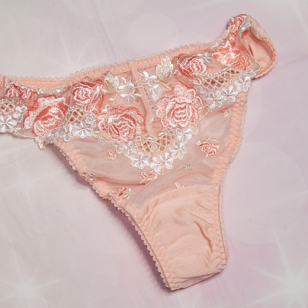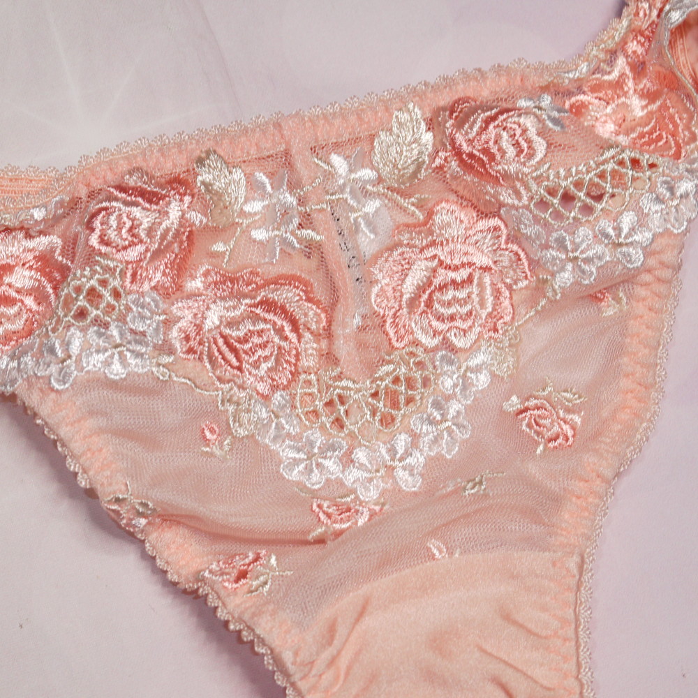 【Bランク/新古美品】パルファージュ:Mサイズ ★ 清楚で大人な淡オレンジ 高級感の薔薇刺繍 艶妻系ランジェ Tショーツ