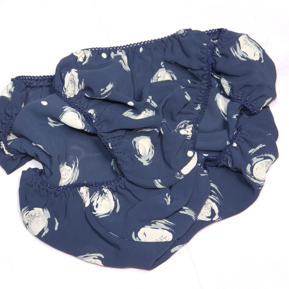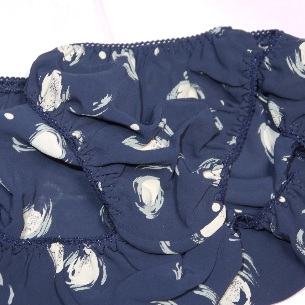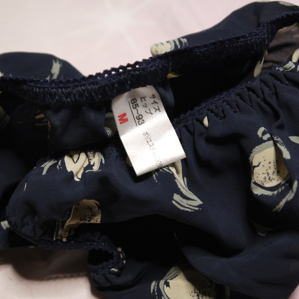 【Bランク/新古美品】セシール:Mサイズ ★ 濃紺×柄 クシュっと可愛いレトロパンツ