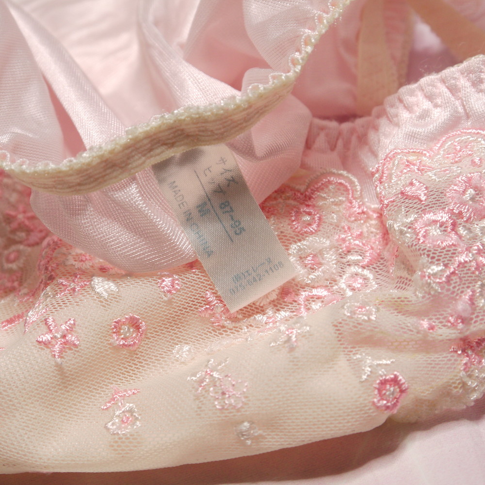 【BCランク/K43】エレーヌ:Mサイズ ★ 甘サテンのピンク×花刺繍 大人ショーツ
