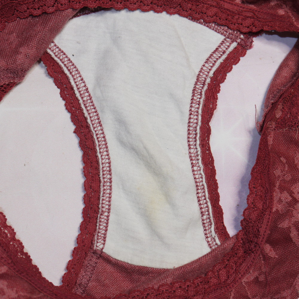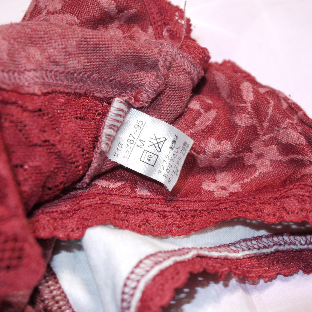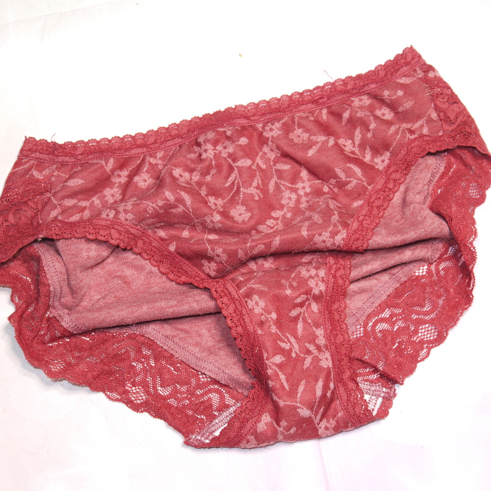 【Cランク/K43】桜井:Mサイズ ★ エンジ×リーフ柄 奥様系 やんわりショーツ