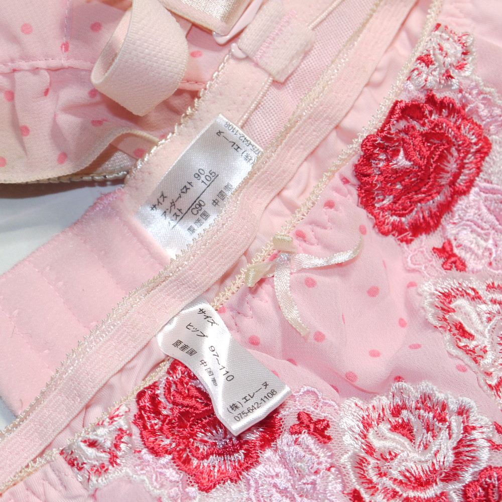 【BCランク/43-】エレーヌ:C90*105 LLサイズ ★ ロリっとキュートな姫ピンク×ドット 小薔薇 希少90 PBセット