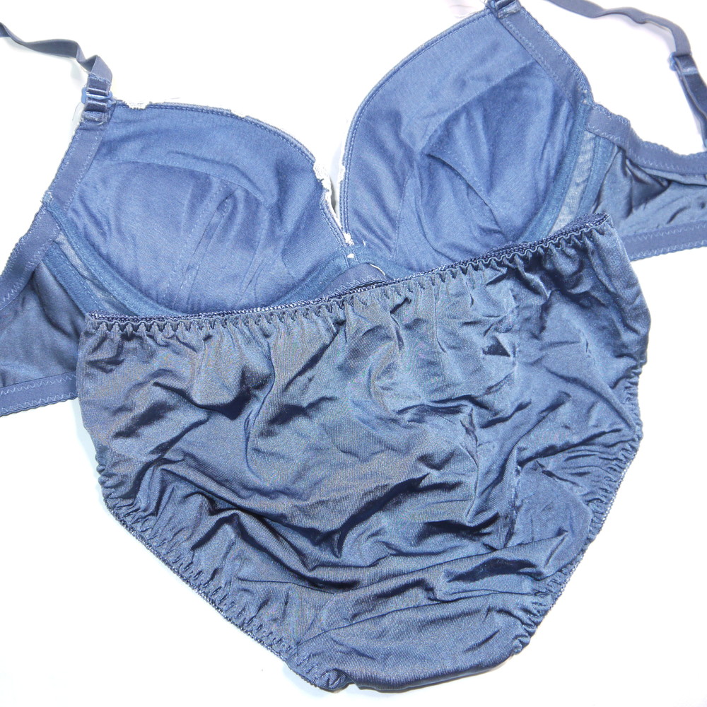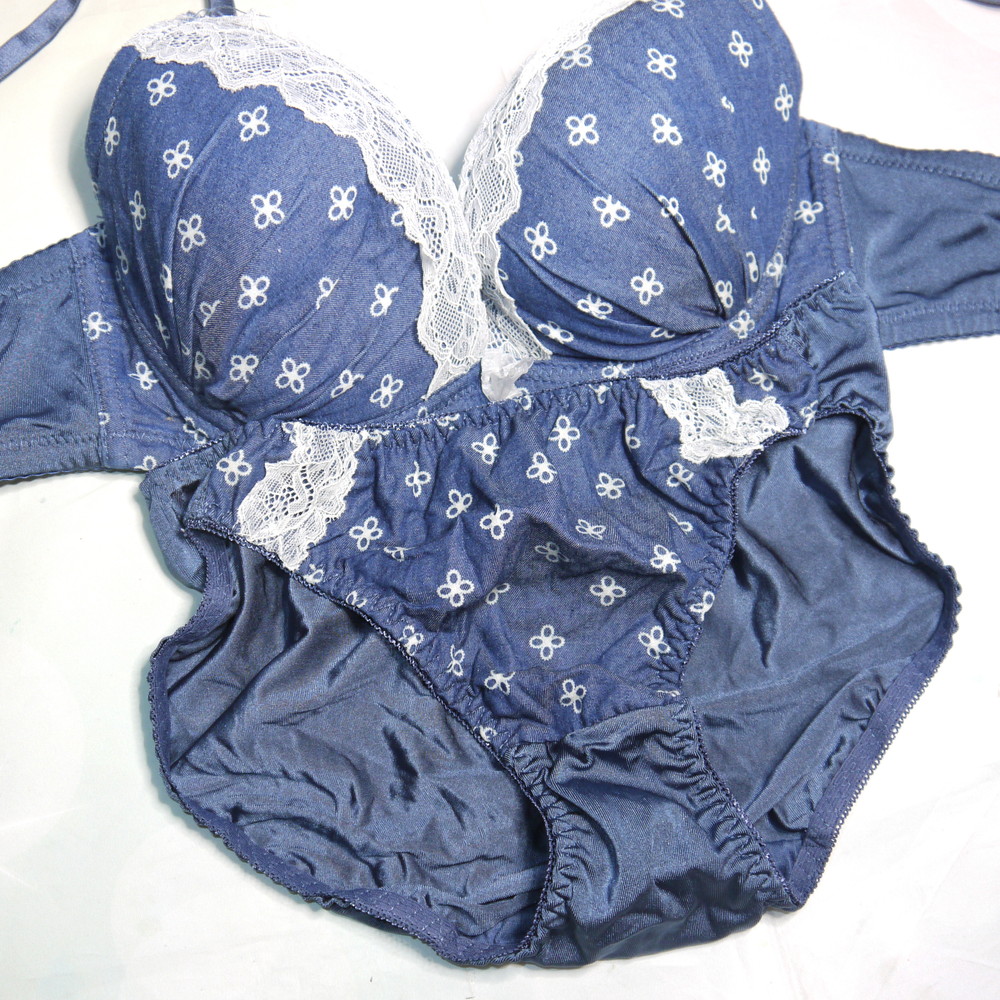 【Bランク/新古美品】丹羽:E75*95 ★ デニム調ブルー×四つ葉風刺繍 巨乳デカブラ PBセット