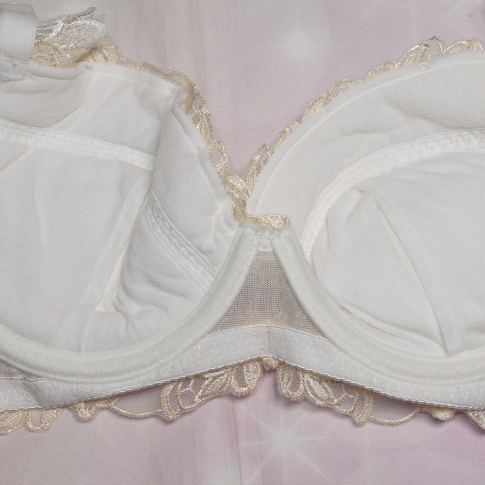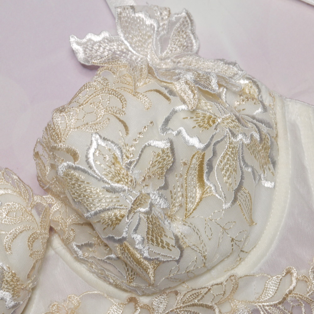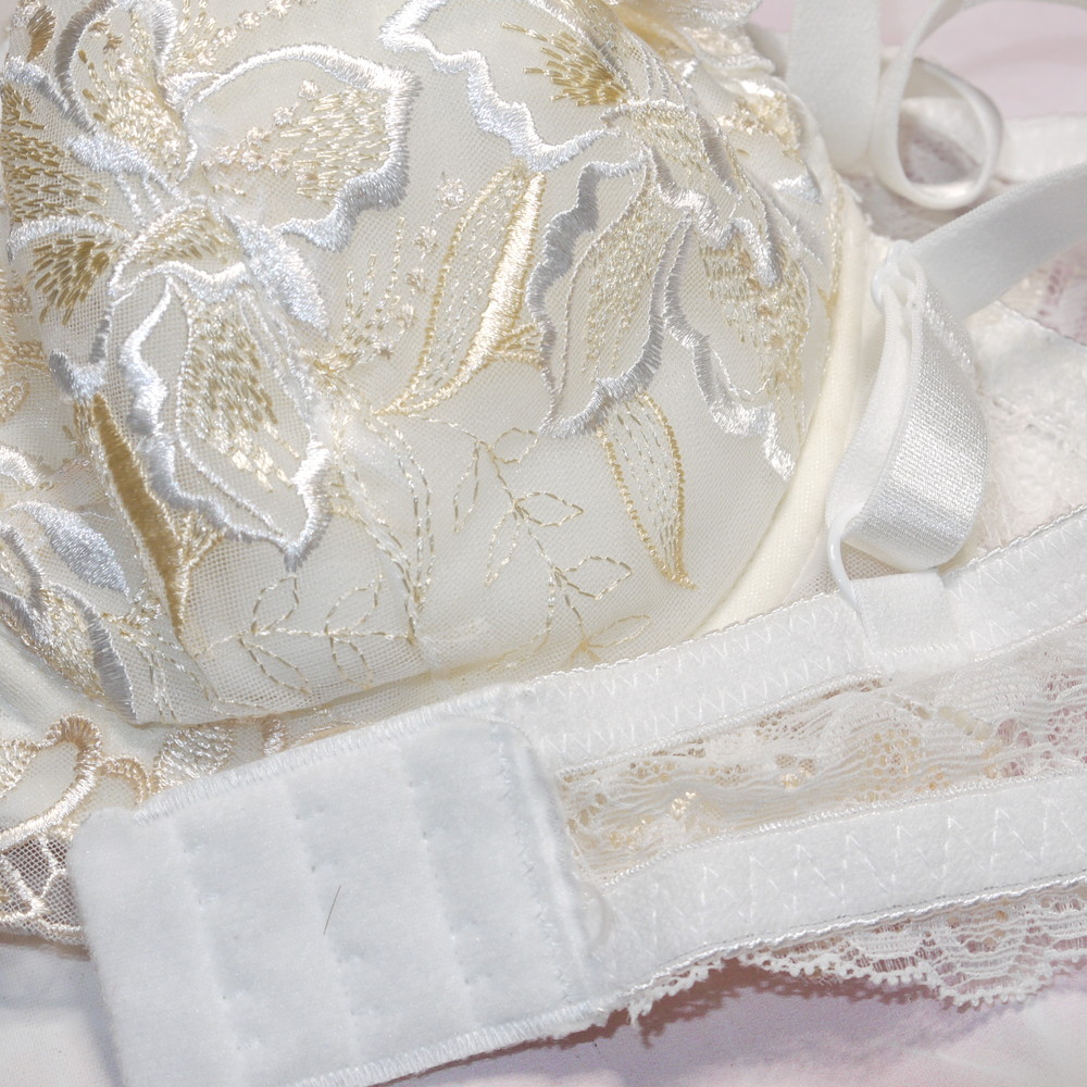 【Bランク/新古美品】CDカップ程 ★ 高級感溢れる白×百合風刺繍 金糸 艶妻感UPブラ