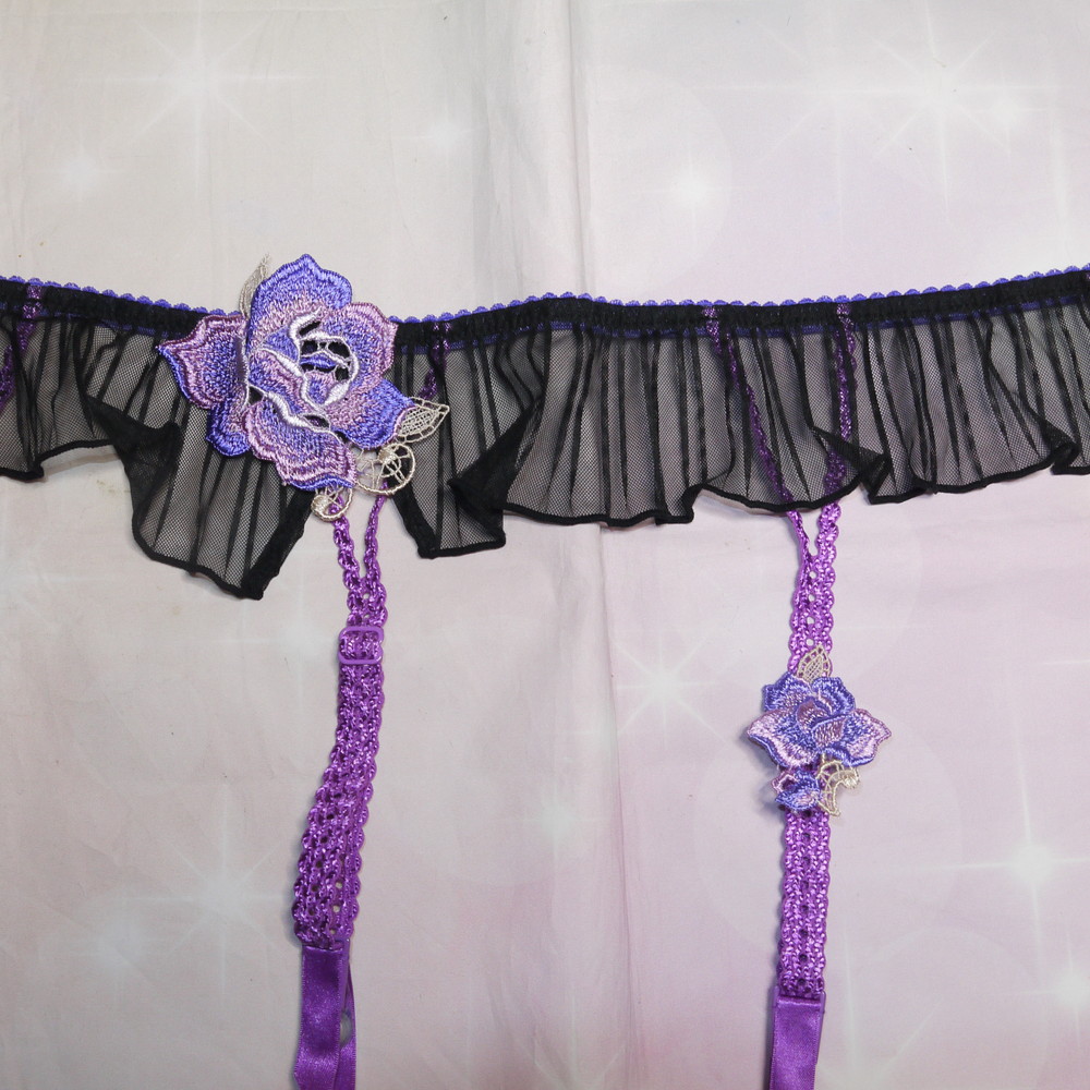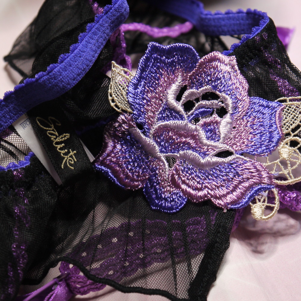 【Bランク/新古美品】サルート 83G:Mサイズ ★ レッドカーペット!妖艶紫薔薇×黒フリル アップリケ ガーターベルト