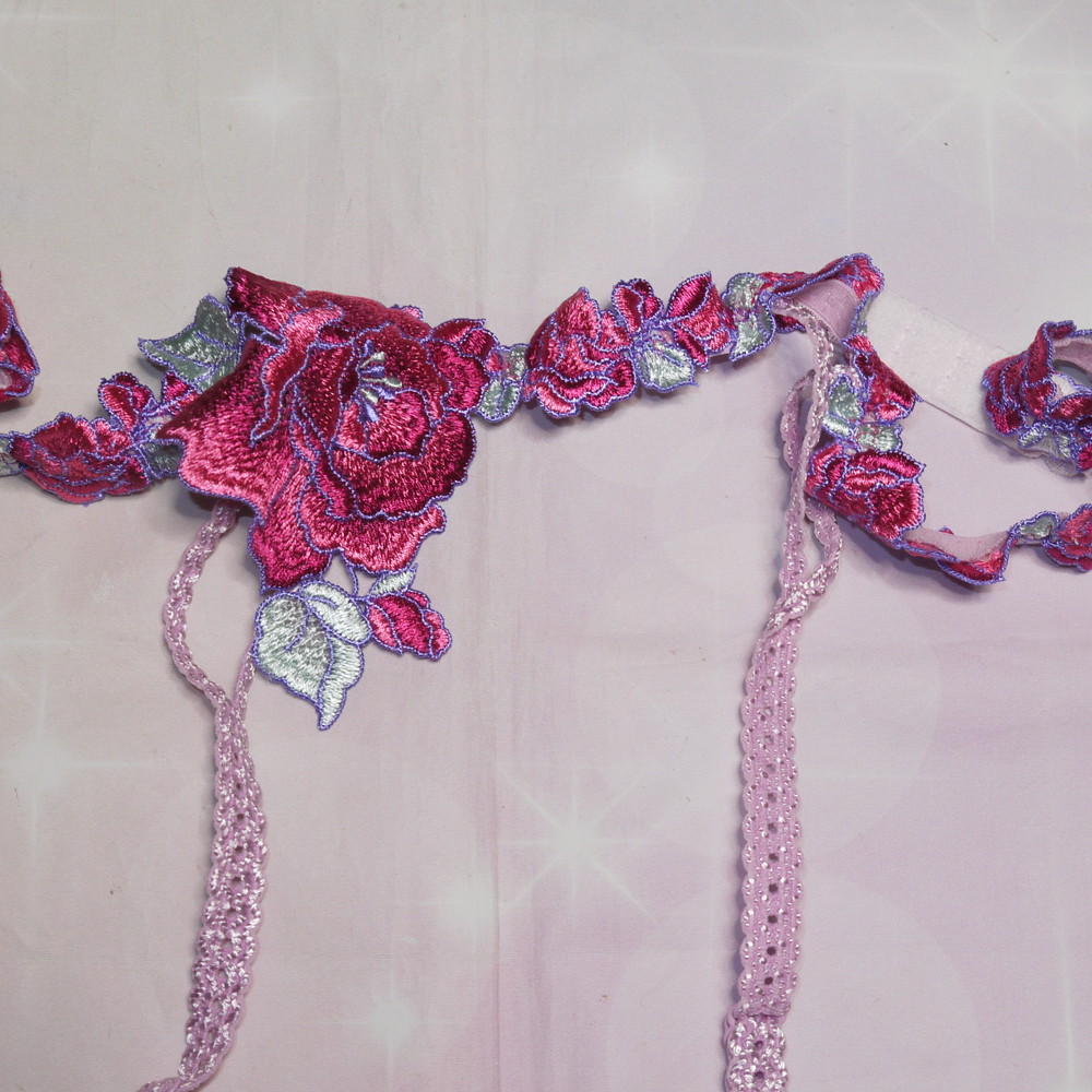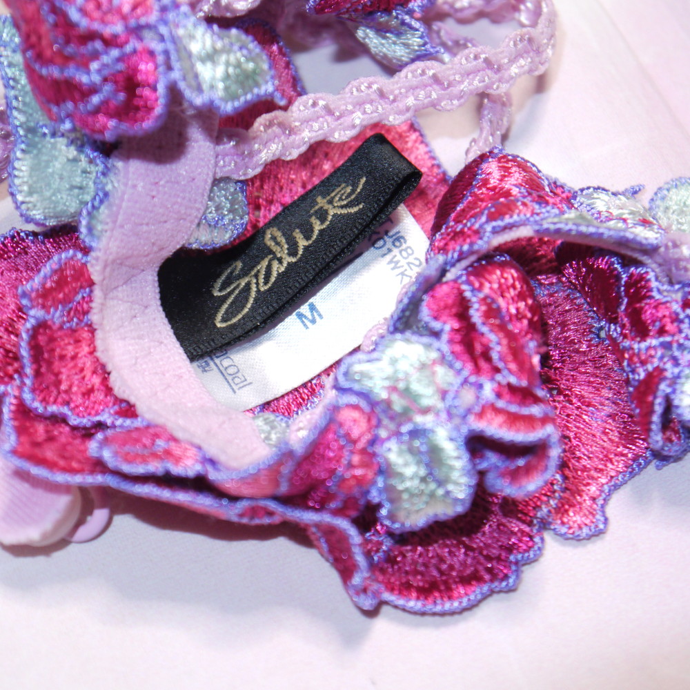 【Bランク/新古美品】サルート 82G:Mサイズ ★ ミュージカル女優?大人可愛いピンク×薔薇アップリケ ガーターベルト