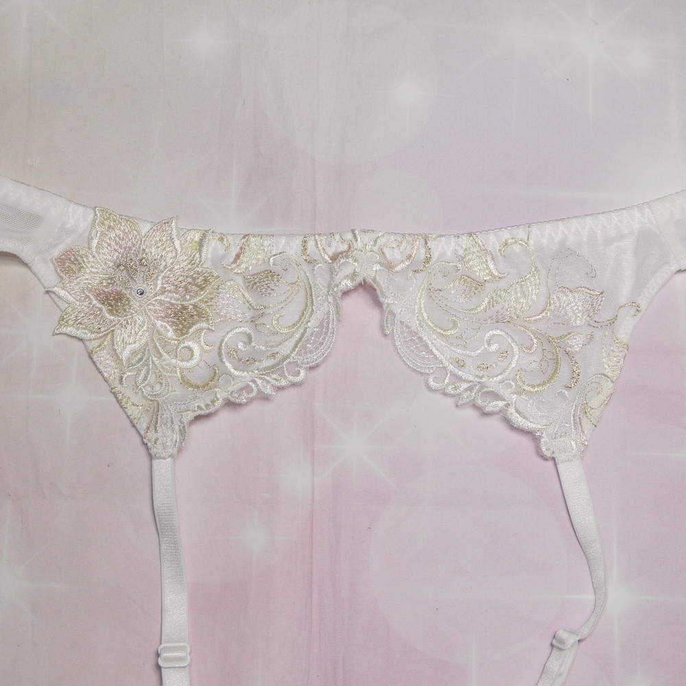 【ABランク/未使用?】SHIROHATO:MLサイズ程度 ★ HIMICO?純白×金花 スワロフ? ガーターベルト