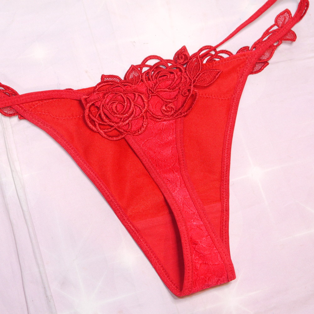【Bランク/新古美品】パルファージュ:Mサイズ ★ 痴女感ましましの赤ランジェ 薔薇刺繍 お姉様系Tショーツ
