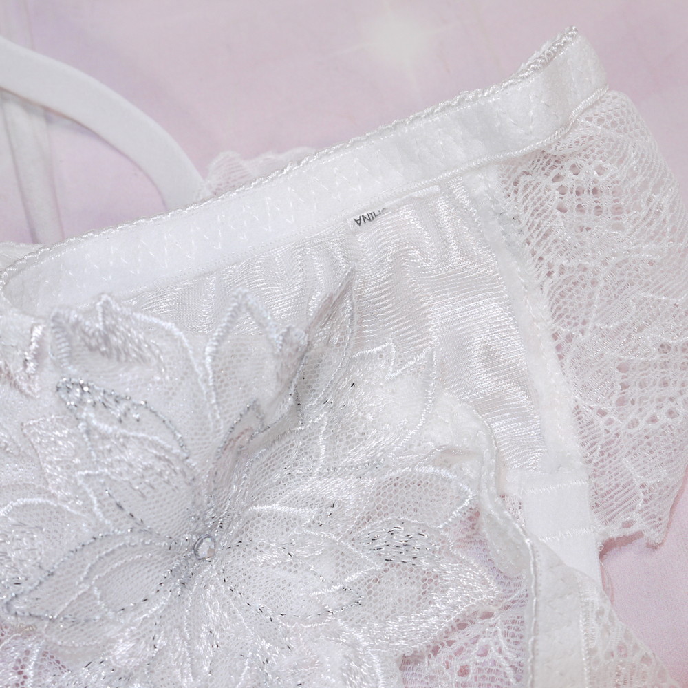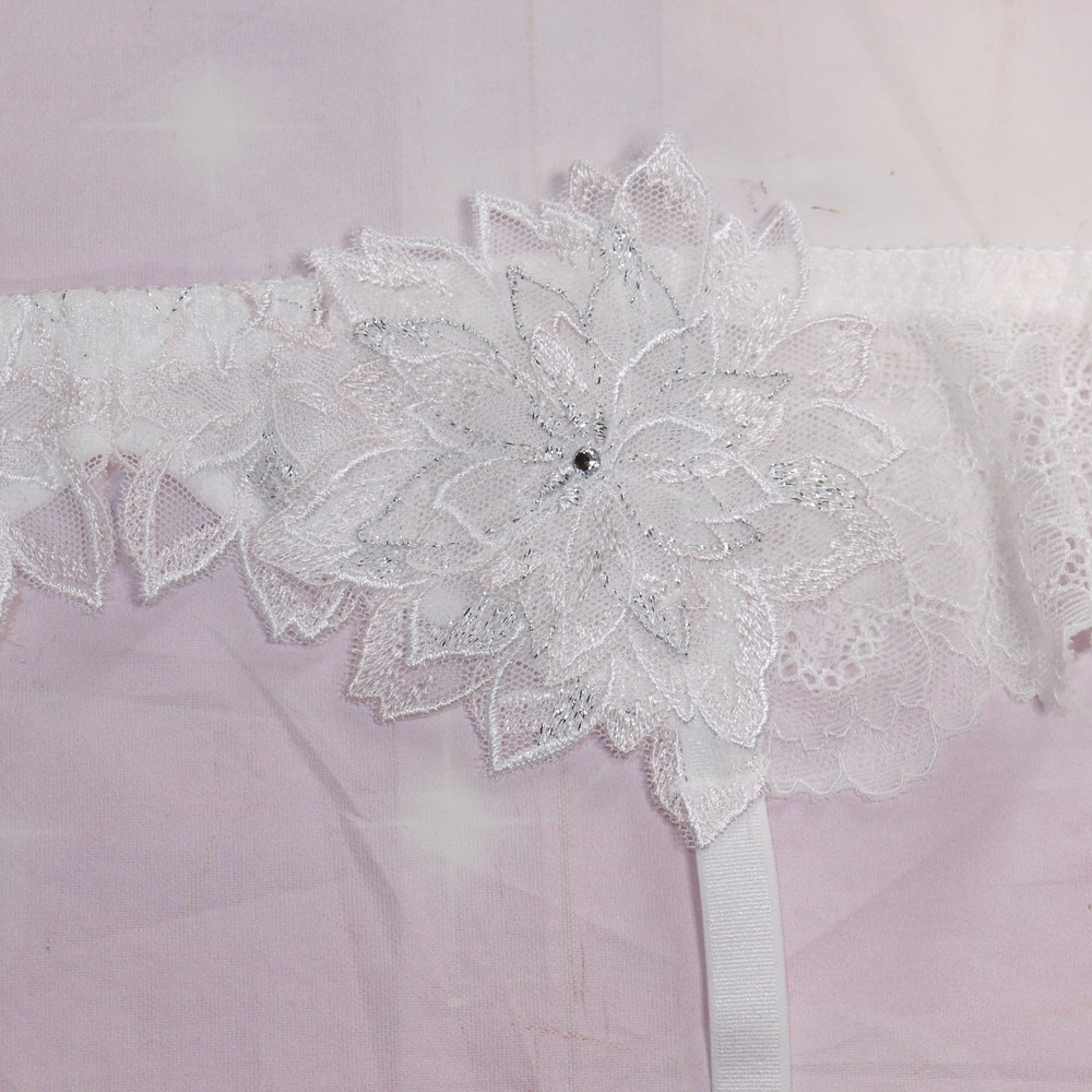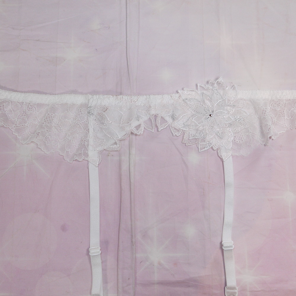 【Bランク/新古美品】HIMICO:MLサイズ程度 ★ 清楚感がすごい白×花アップリケ スワロフ? ガーターベルト
