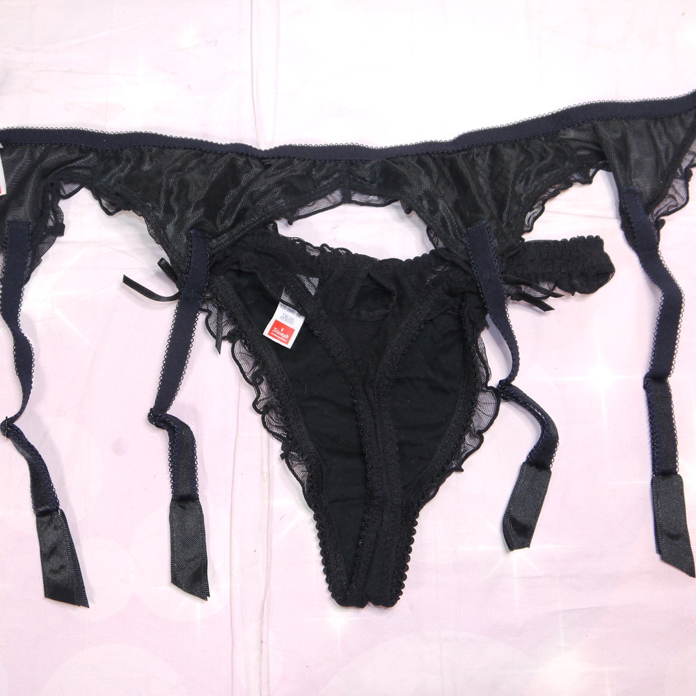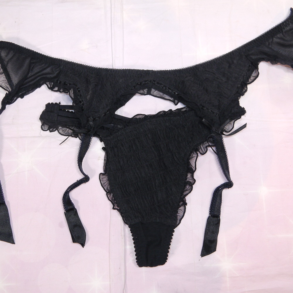 【Bランク/新古美品】トリンプ:Mサイズ ★ 大人度UPの黒 フリルが可愛いガーター&Tバックセット