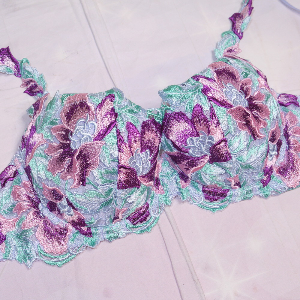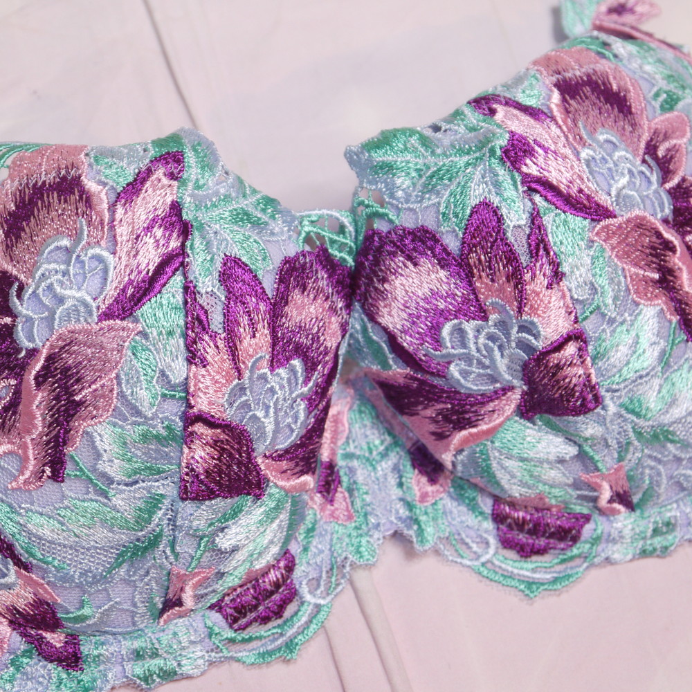 【Bランク/新古美品】スタディオファイブ?:DEカップ程 ★ 毒々しい花々刺繍 マダム感溢れる巨乳デカブラ