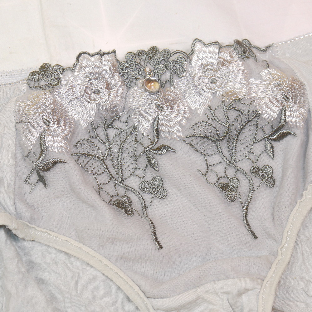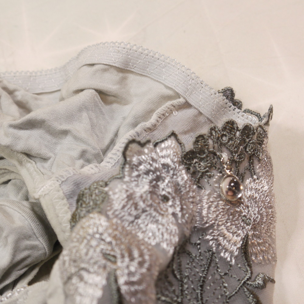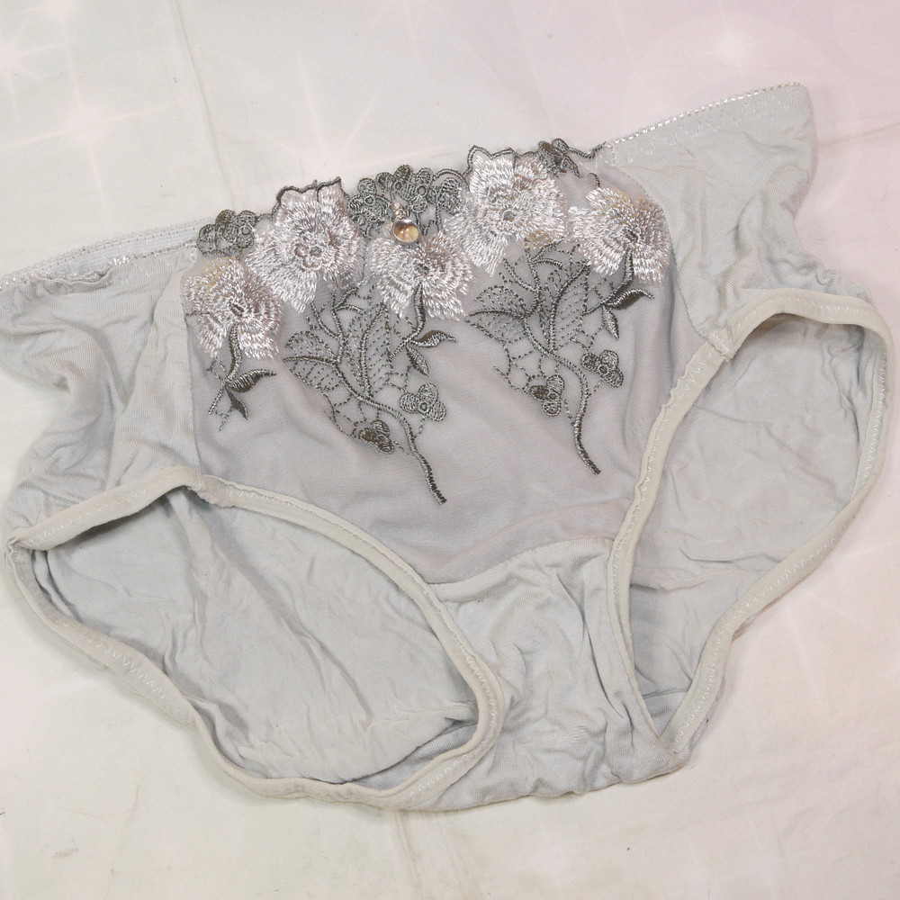【Cランク/K43】:MLサイズ程 ★ 大人グレー×花刺繍 ショーツ