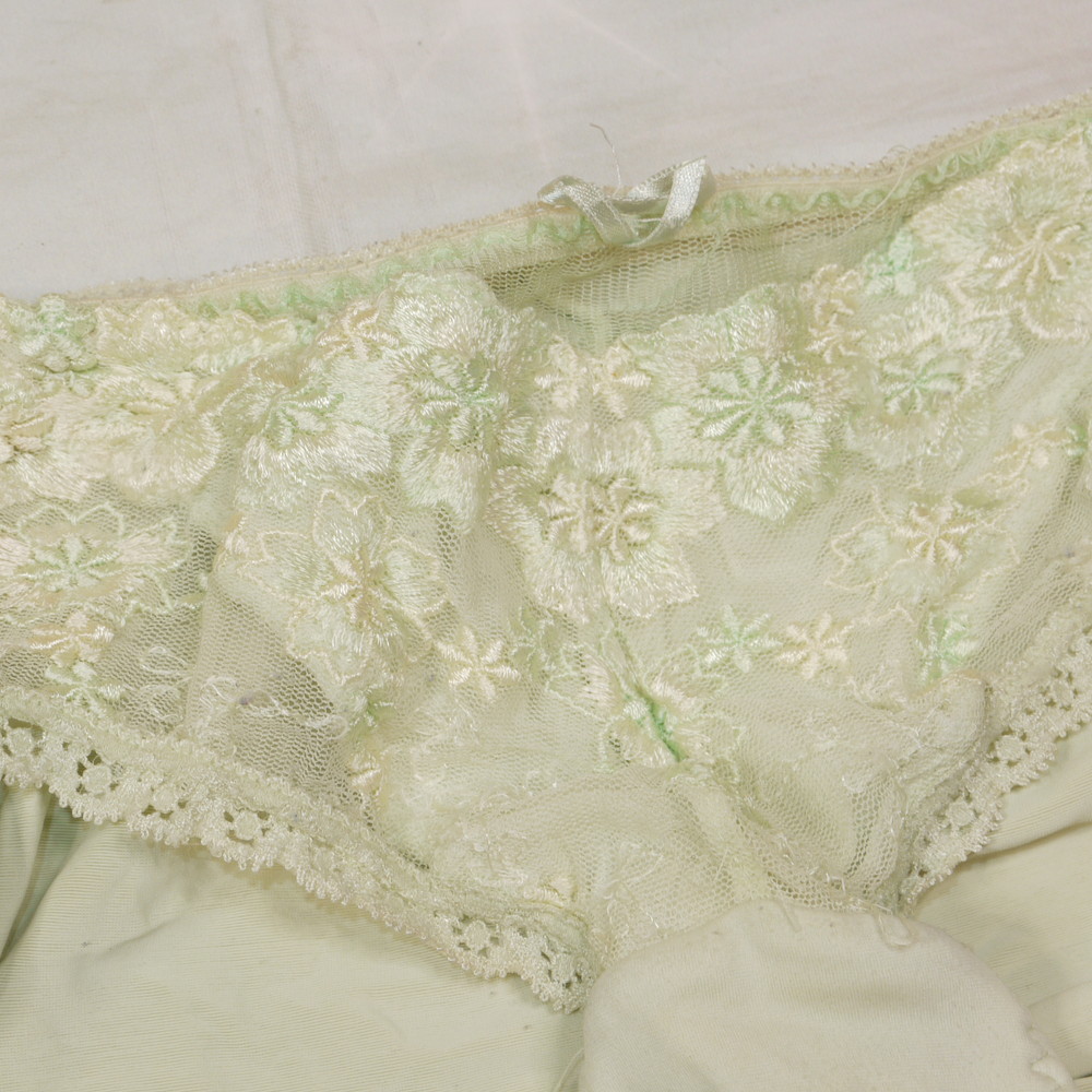 【Cランク/K43】トリンプ:MLサイズ程 ★ 清楚ライトグリーン×花刺繍 大人ショーツ