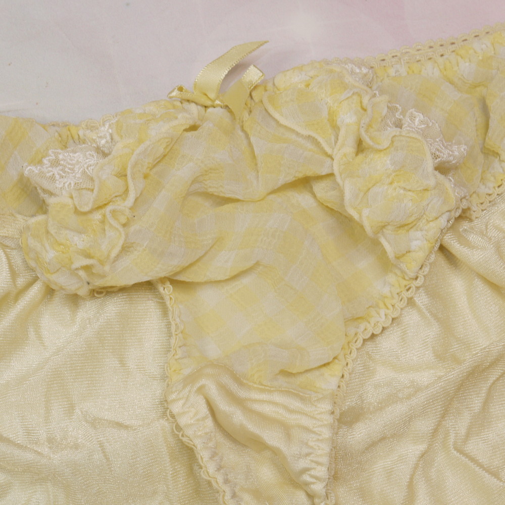 【Cランク】しまむら:Lサイズ ★ ロリっと可愛いイエロー×チェック サテン生地 JCJK系パンティ