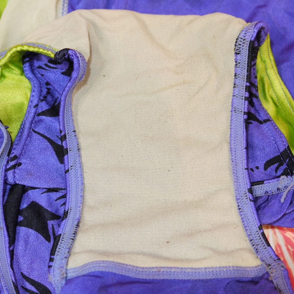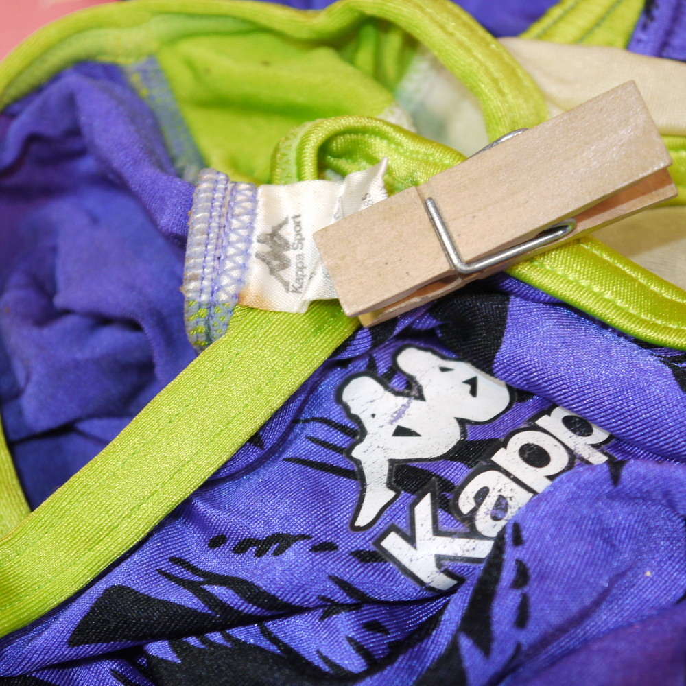 【Cランク】Kappa:Mサイズ ★ JCJK部活? 水泳 紫&イエローパイピング 競泳水着
