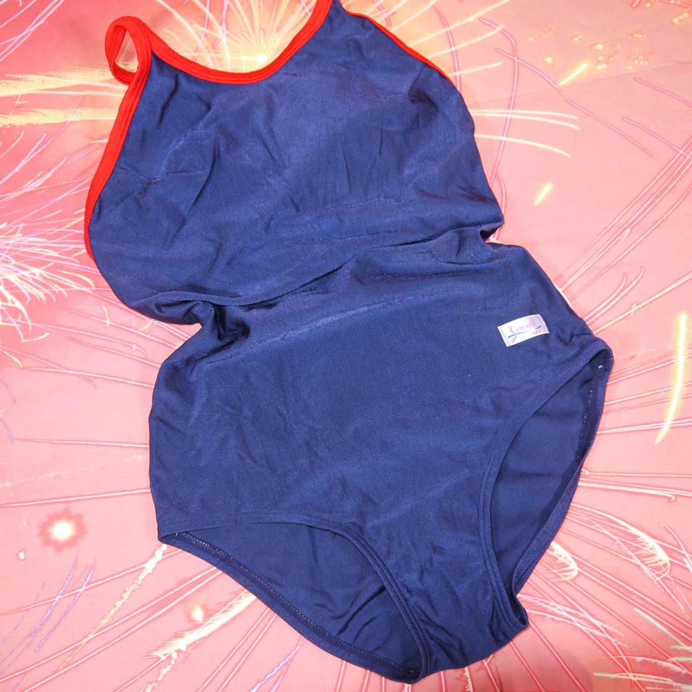 【BCランク】小松ニット:Mサイズ ★ Swim Wear!ネイビー×赤パイピング 中高部活 水泳 水着