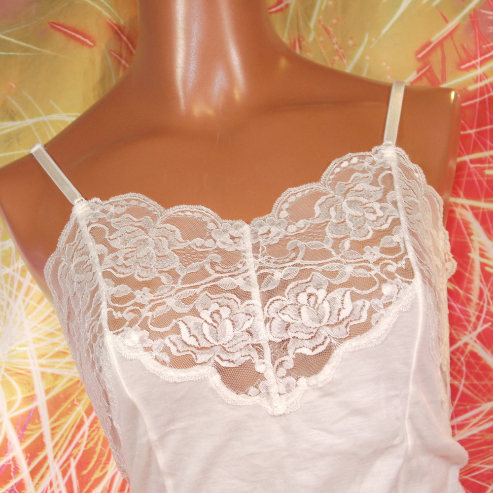【Bランク/新古美品】:上:M 丈50 下:ML程 ★ 純粋香るオフホワ×レトロ薔薇レース 透け胸SEXY キャミ&ペチセット テディ風